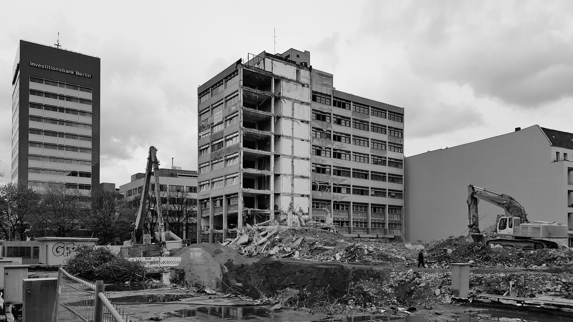 Es geht los – der Abriss der Altbebauung aus den 70er Jahren ist in vollem Gange.