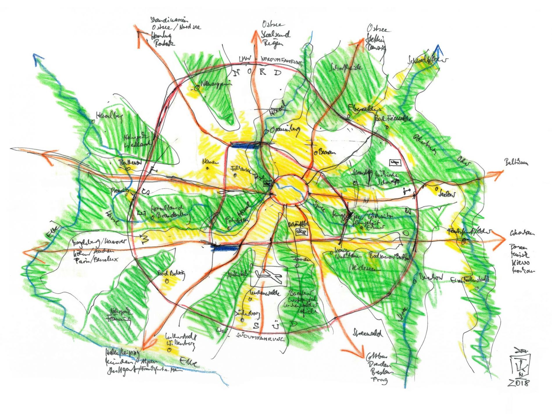 Initialzündung des Masterplans ist um 2040 die Festlegung der langfristig nicht zur Bebauung vorgesehenen Landschaftszonen in der Region, die entlang der Flüsse, Seen und Hügelketten der Mark Brandenburg liegen. Die Politik hat um 2060 die für die Infrastruktur, Stadt- und Landschaftsentwicklung der Bundesländer Berlin und Brandenburg zuständigen Behörden zusammengelegt und auf Basis einer einheitlichen Finanzierung ein für Europa herausragendes Strukturkonzept erarbeitet, auf dessen Grundlage die Entwicklung der Region effizient gesteuert wird.