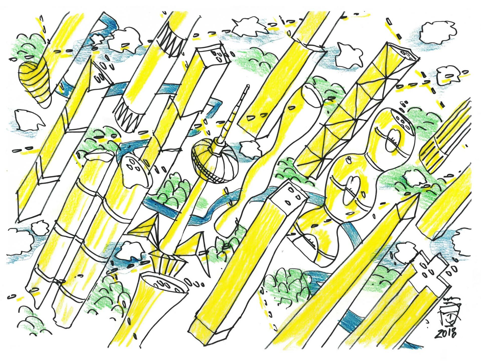 Torsten Krüger beteiligt sich an der Architektur- und Städtebaudiskussion in Berlin. Er zeigt im Rahmen der Ausstellung, die sich den Potentialen und Ideen neuer Netze für die wachsende Stadt widmet, seine Vision „GREATER BERLIN 2100“.