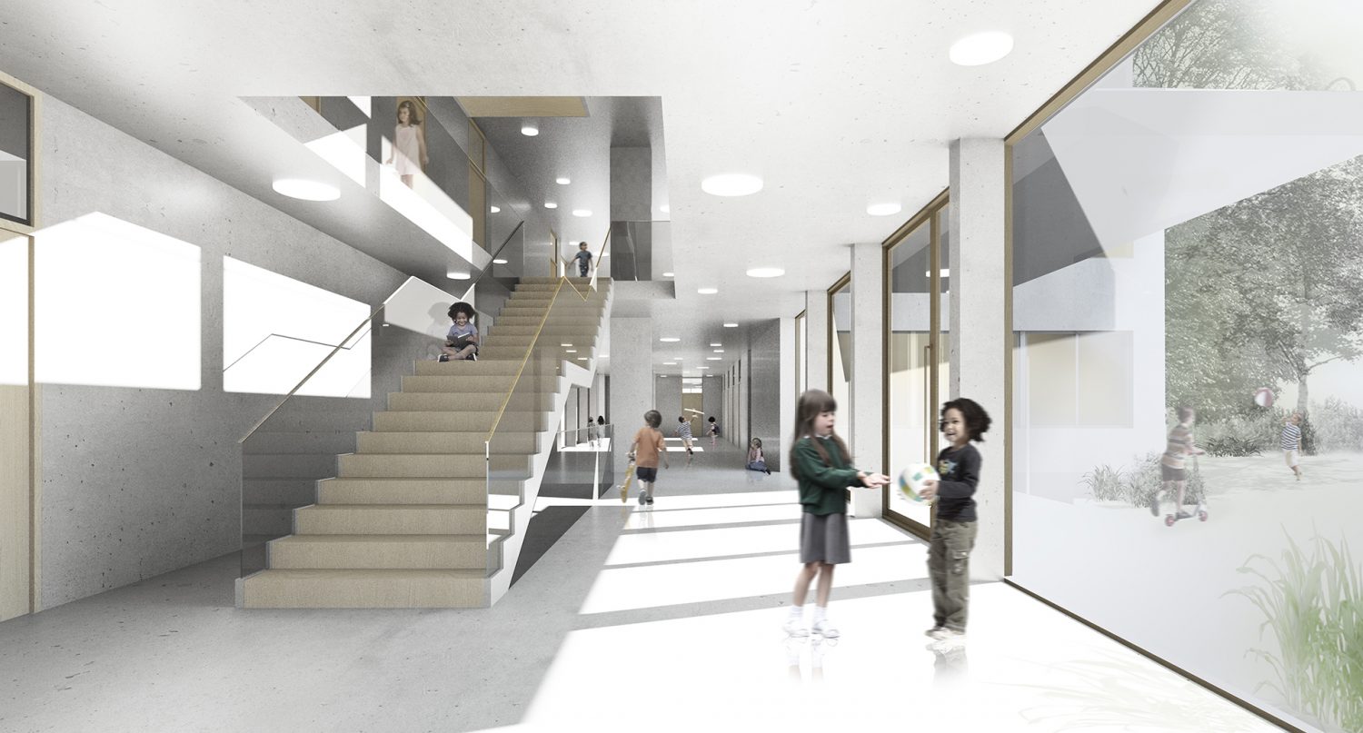 Mit einem 2. Preis wurde der Entwurf von KSV Krüger Schuberth Vandreike für neues Forum mit Grundschule, Sporthalle und Bürgerzentrum Hegermühle in Strausberg ausgezeichnet. …