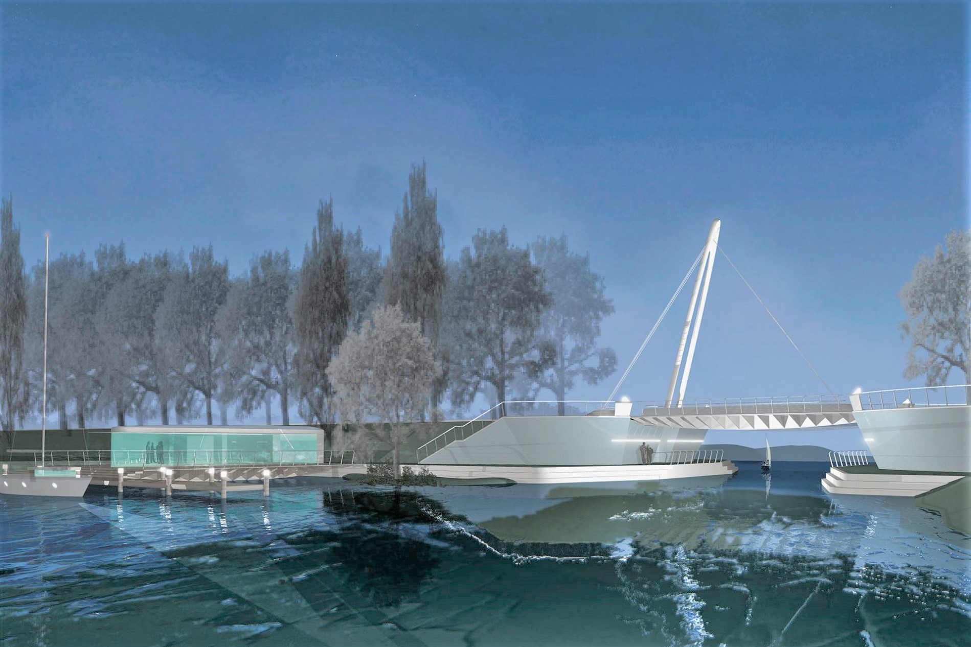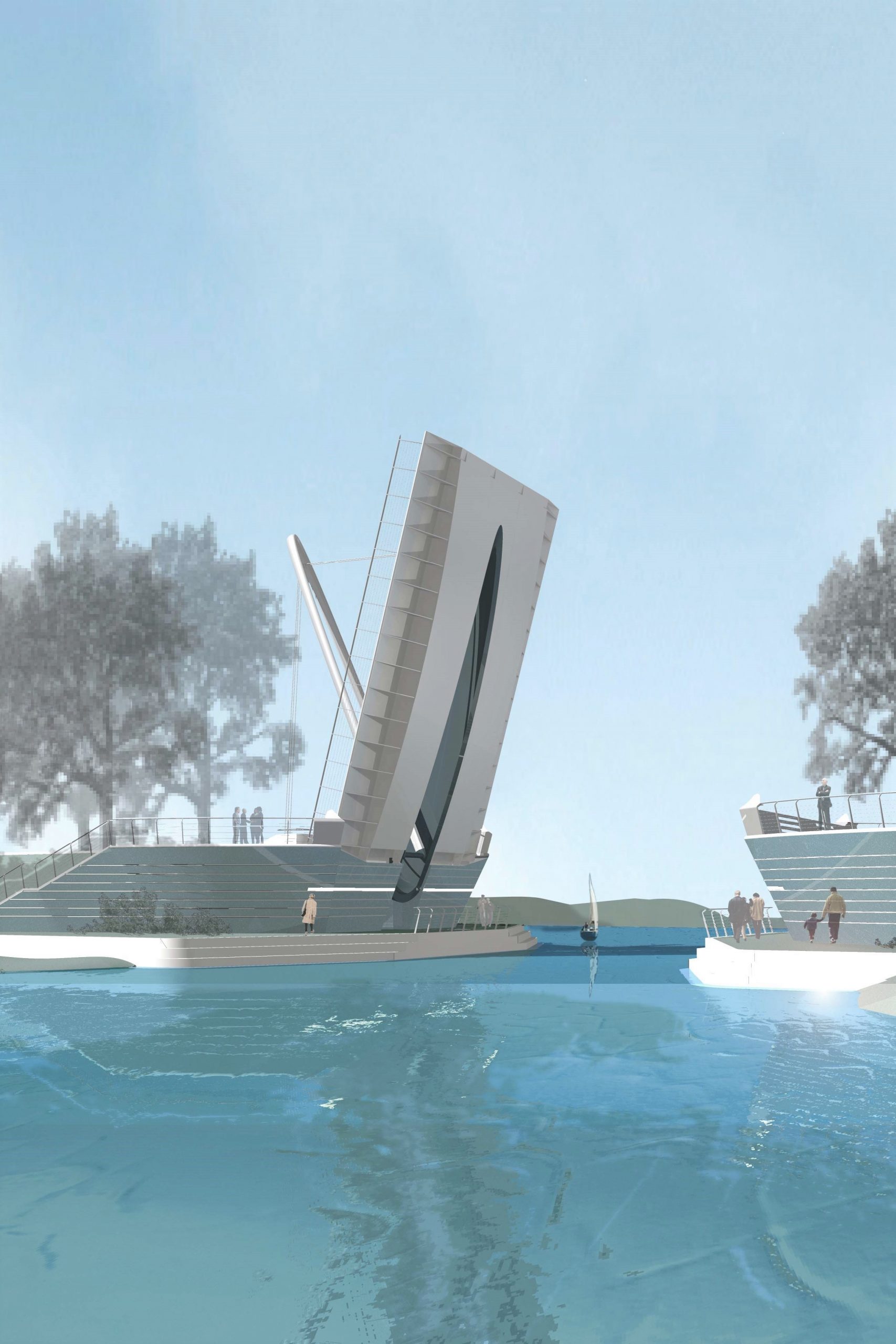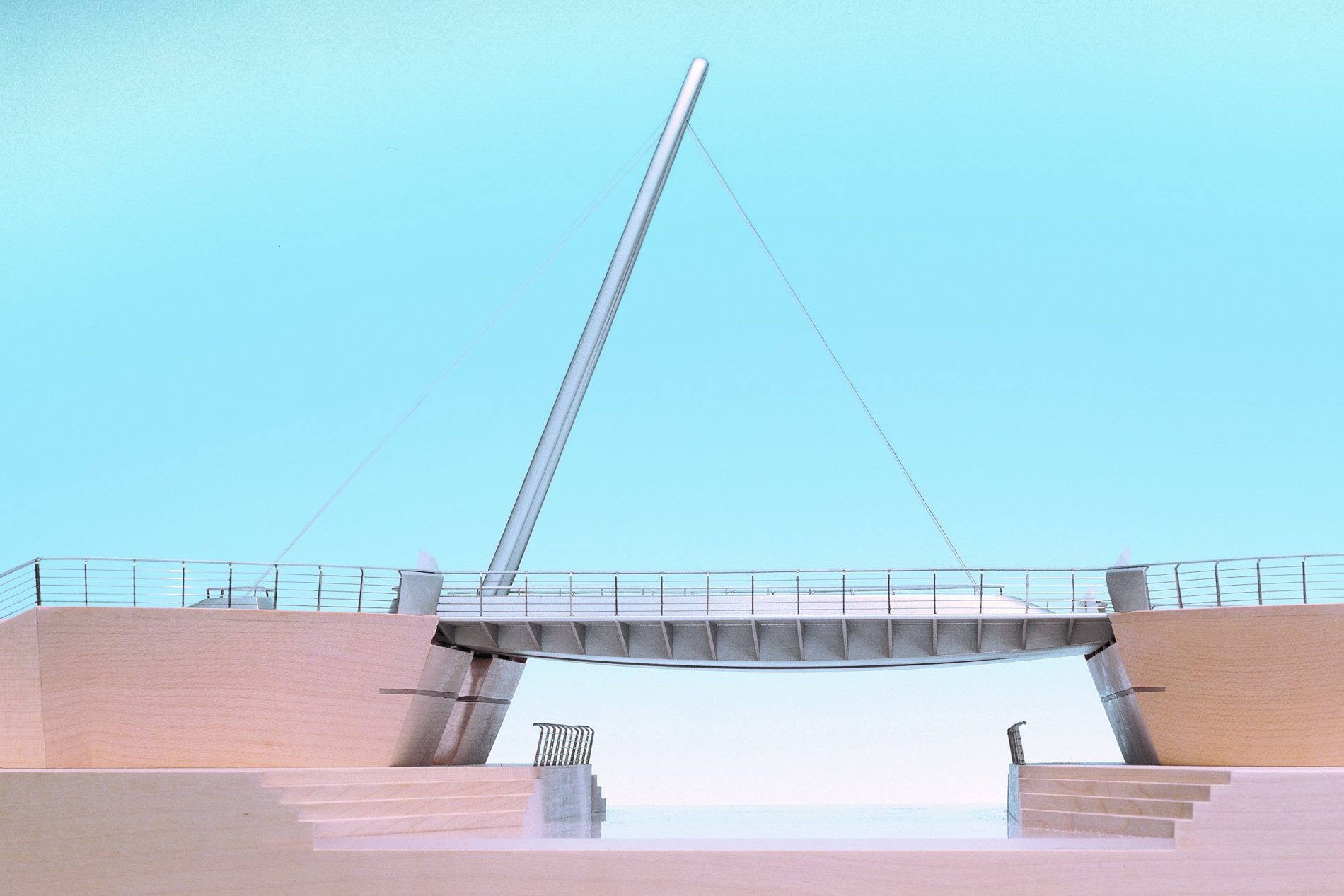 Die Brücke, mit einer Spannweite von 22 Metern, zwischen innerem und äußerem Ziegelsee ermöglicht Segelbooten und größeren Motorbooten den Zugang in das Zentrum der Stadt Schwerin. Der Brückenkörper wird über einen beweglichen Pylon unter Ausnutzung von optimalen Kraftlinien gehoben und gesenkt. Der Pylon ist zugleich vom Stadtzentrum aus ein sichtbares Zeichen und illuminiert die Brücke in den Abendstunden.