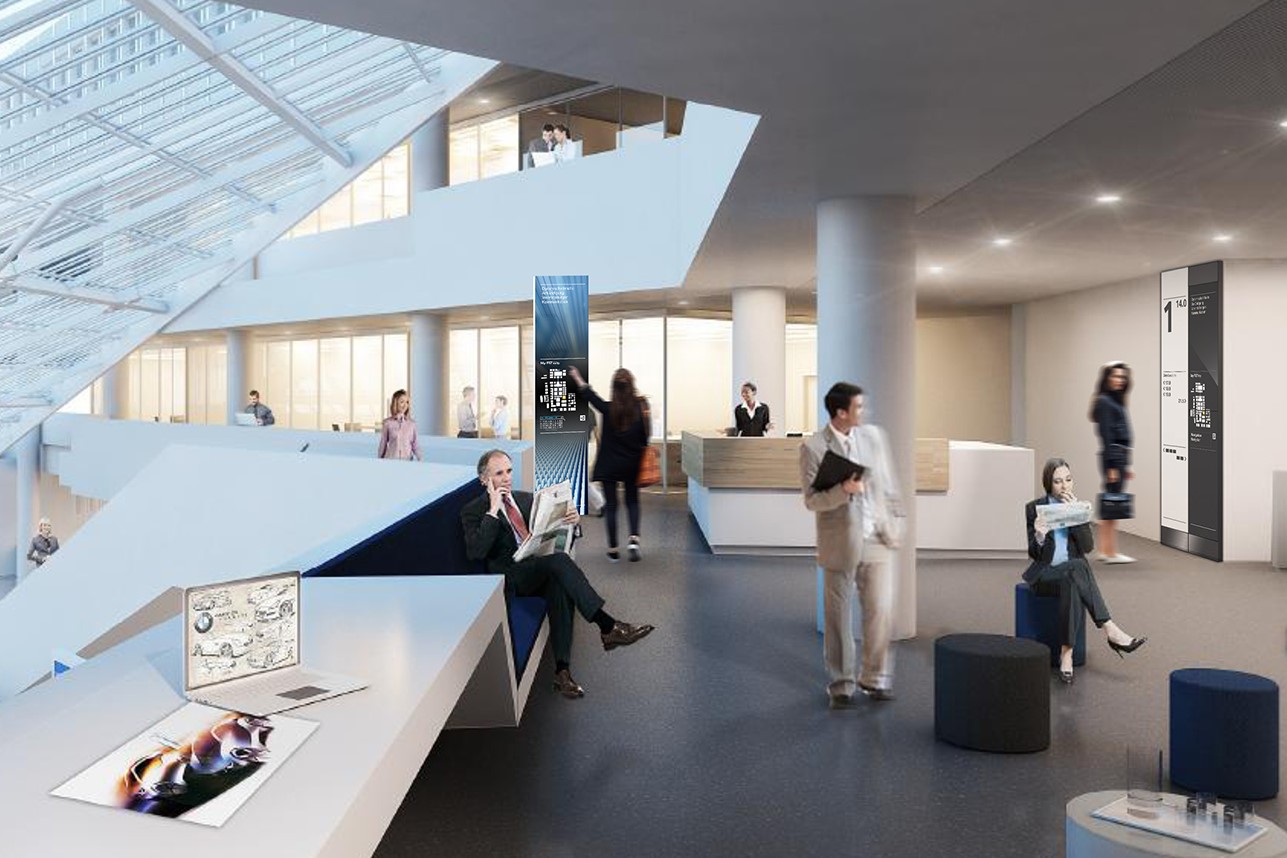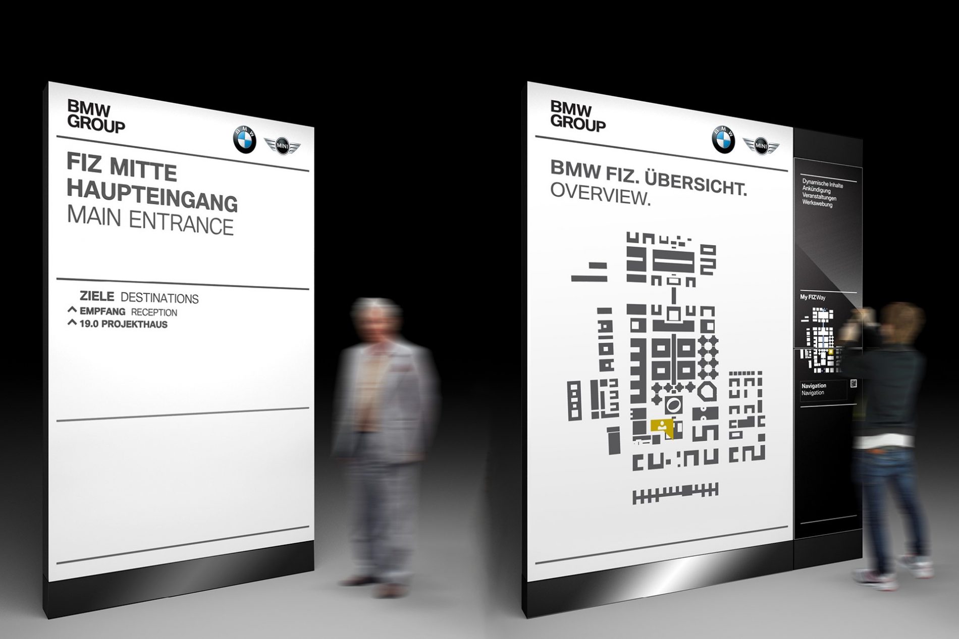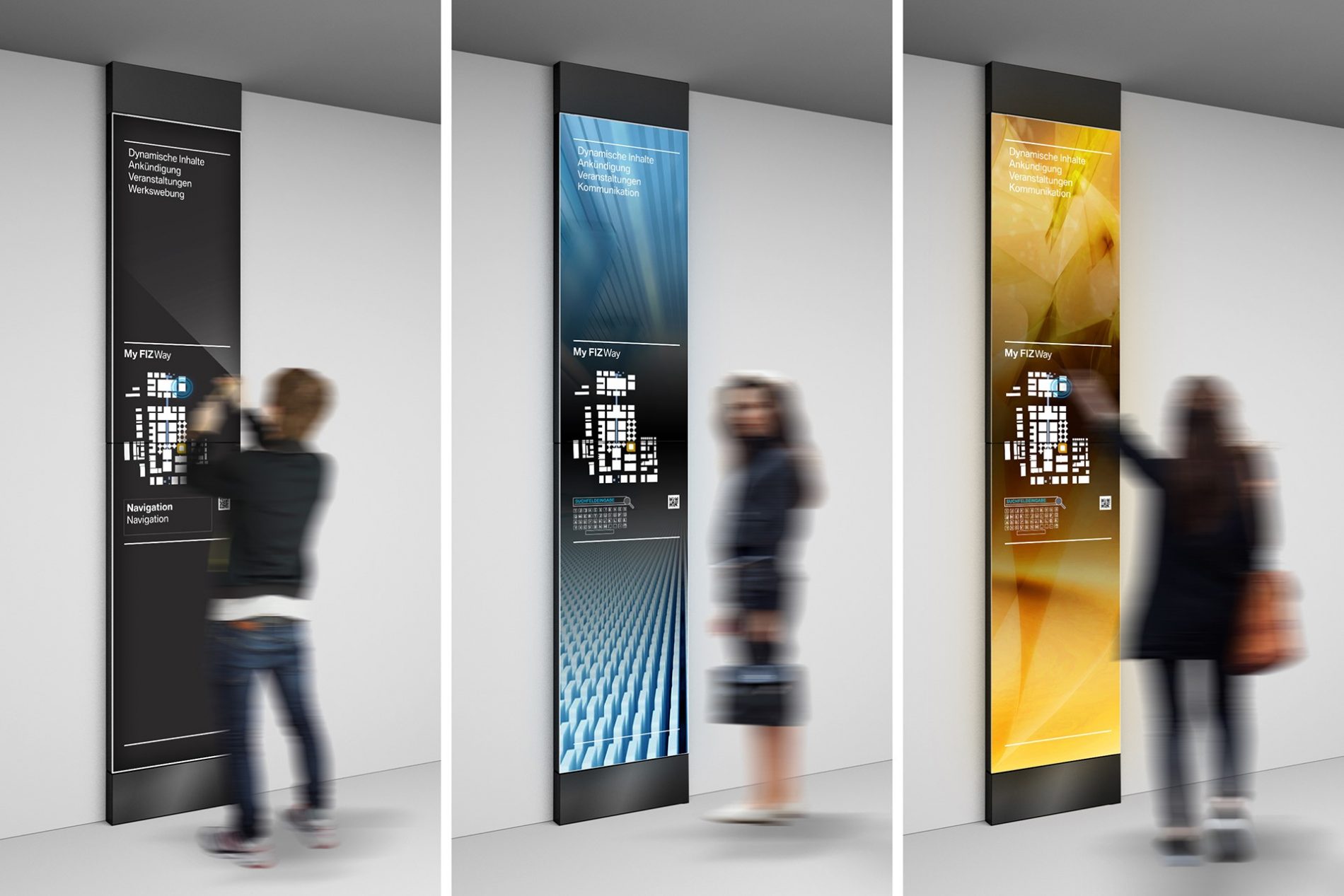 Die Erweiterung des FIZ Areals erfordert ein übergreifendes Navigations- und Signaletik-Konzept für Außen- und Innenräume, das Personen-, Waren- und Informationsströme effizient, eindeutig und verständlich organisiert werden.