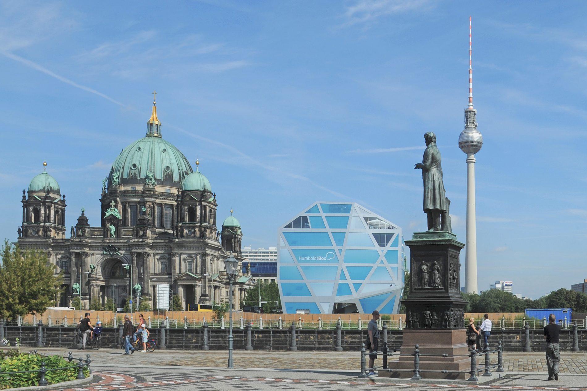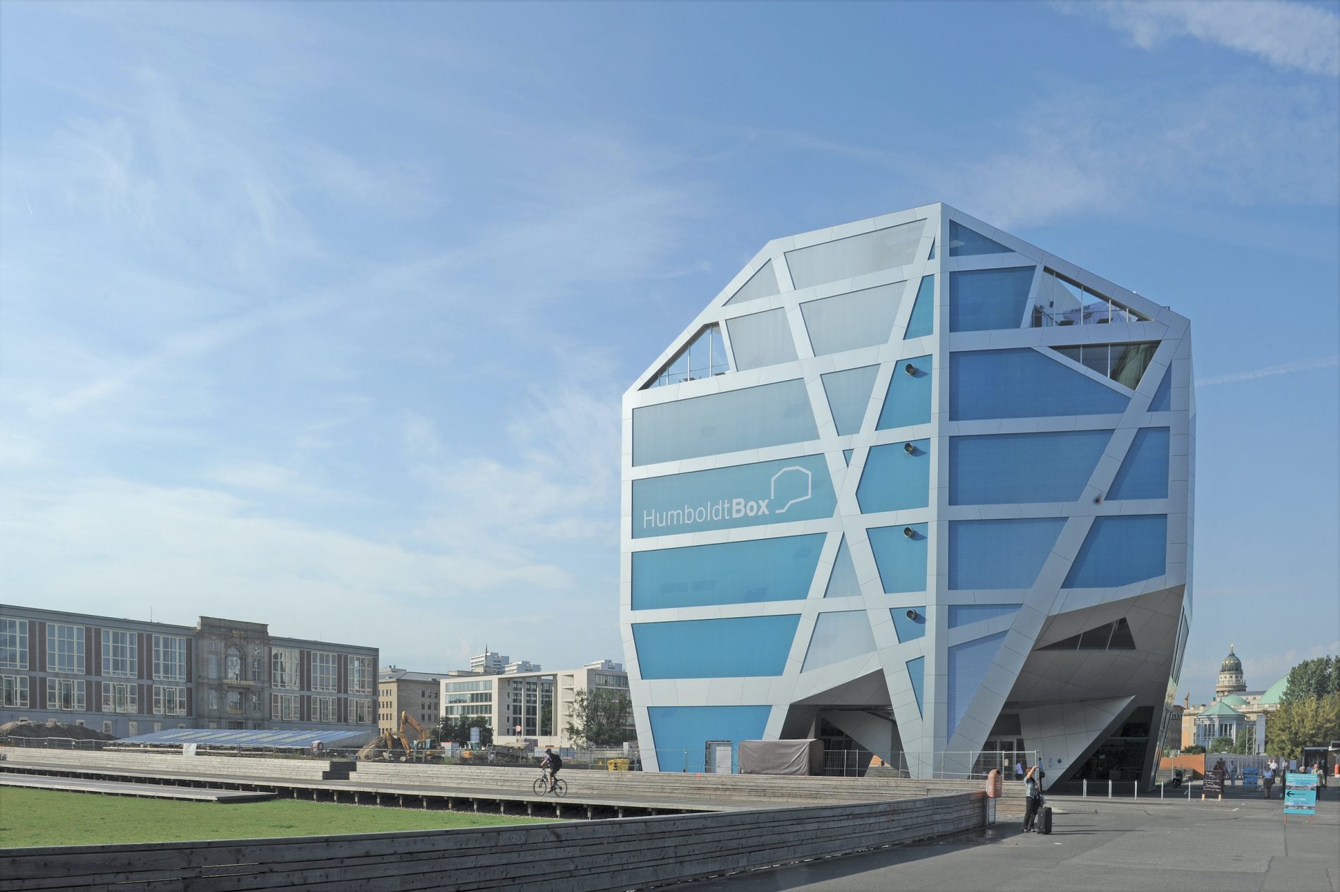 Die Humboldt-Box auf der Spreeinsel diente von 2011 bis 2018 als temporärer Informationspavillon zum Neubau des Berliner Stadtschlosses und Humboldtforums. In diesem Zeitraum besichtigten über eine Million Besucher die Humboldt-Box, um sich über das Projekt und den Baufortschritt auf der Baustelle zu informieren.