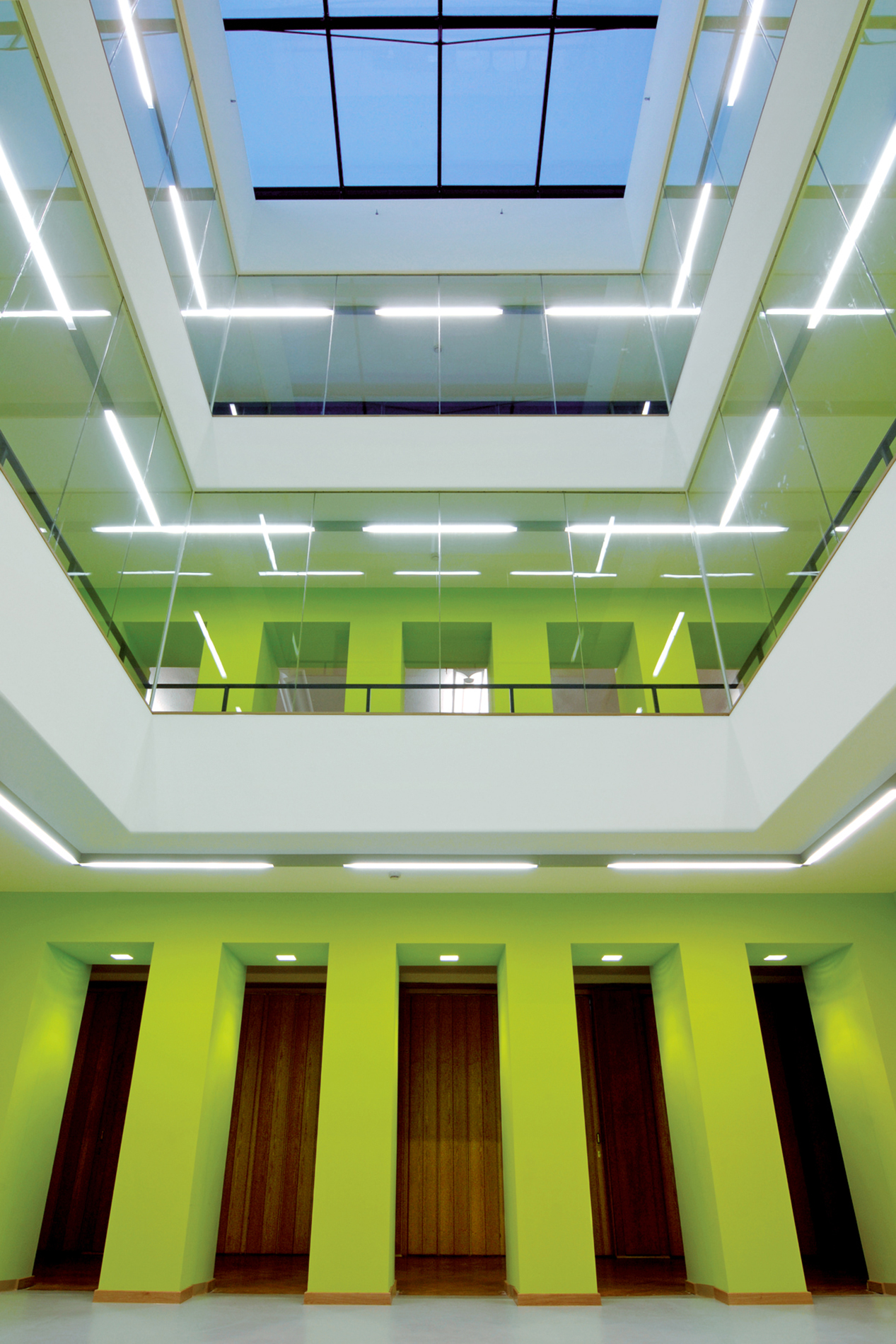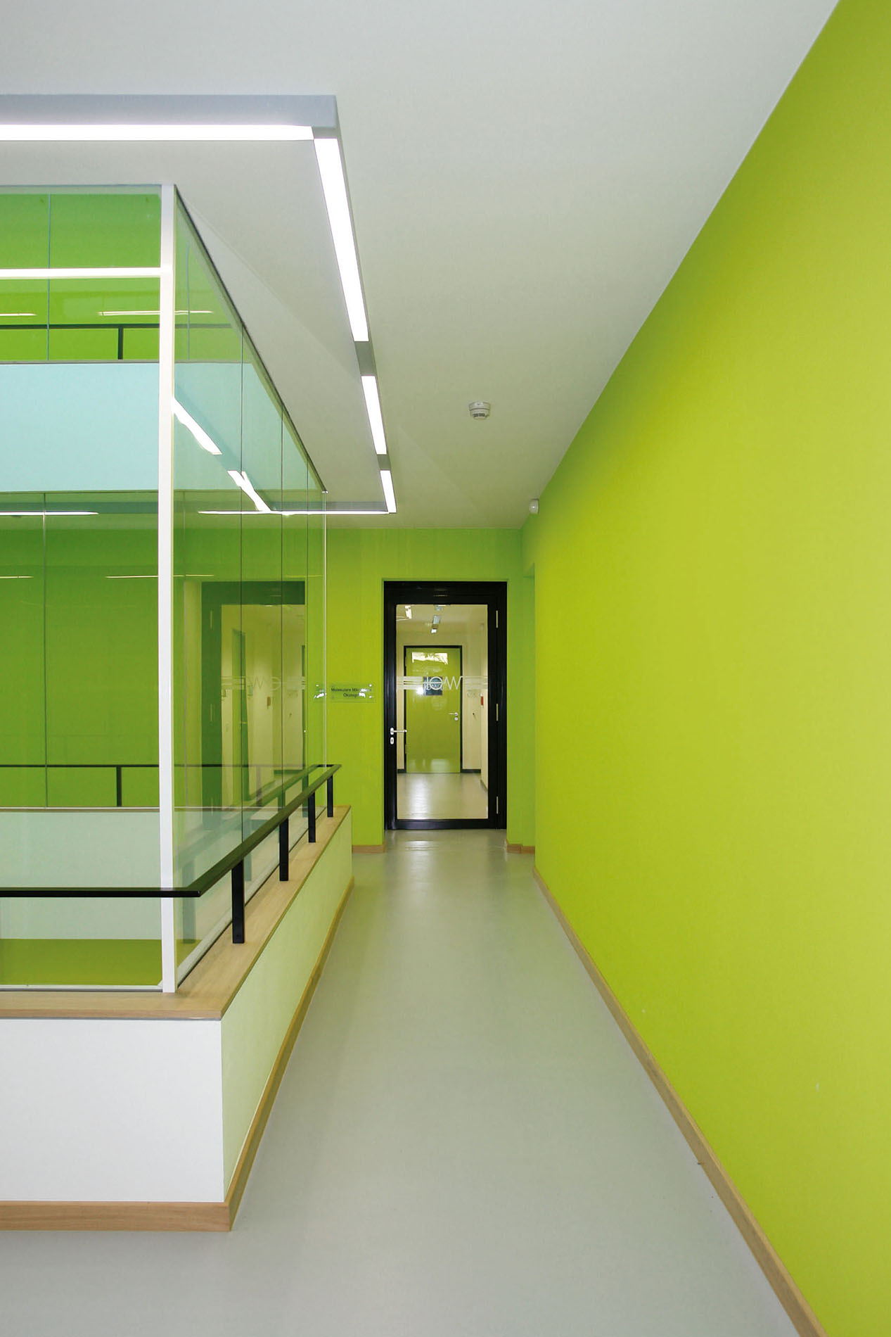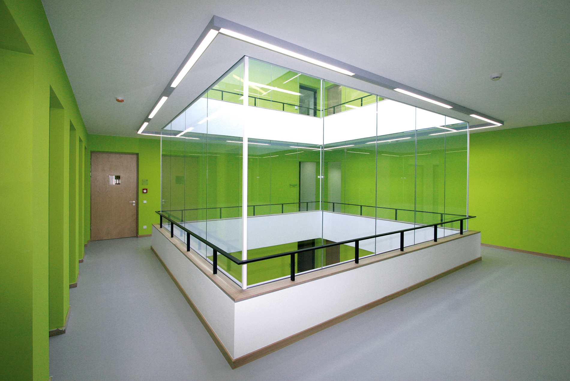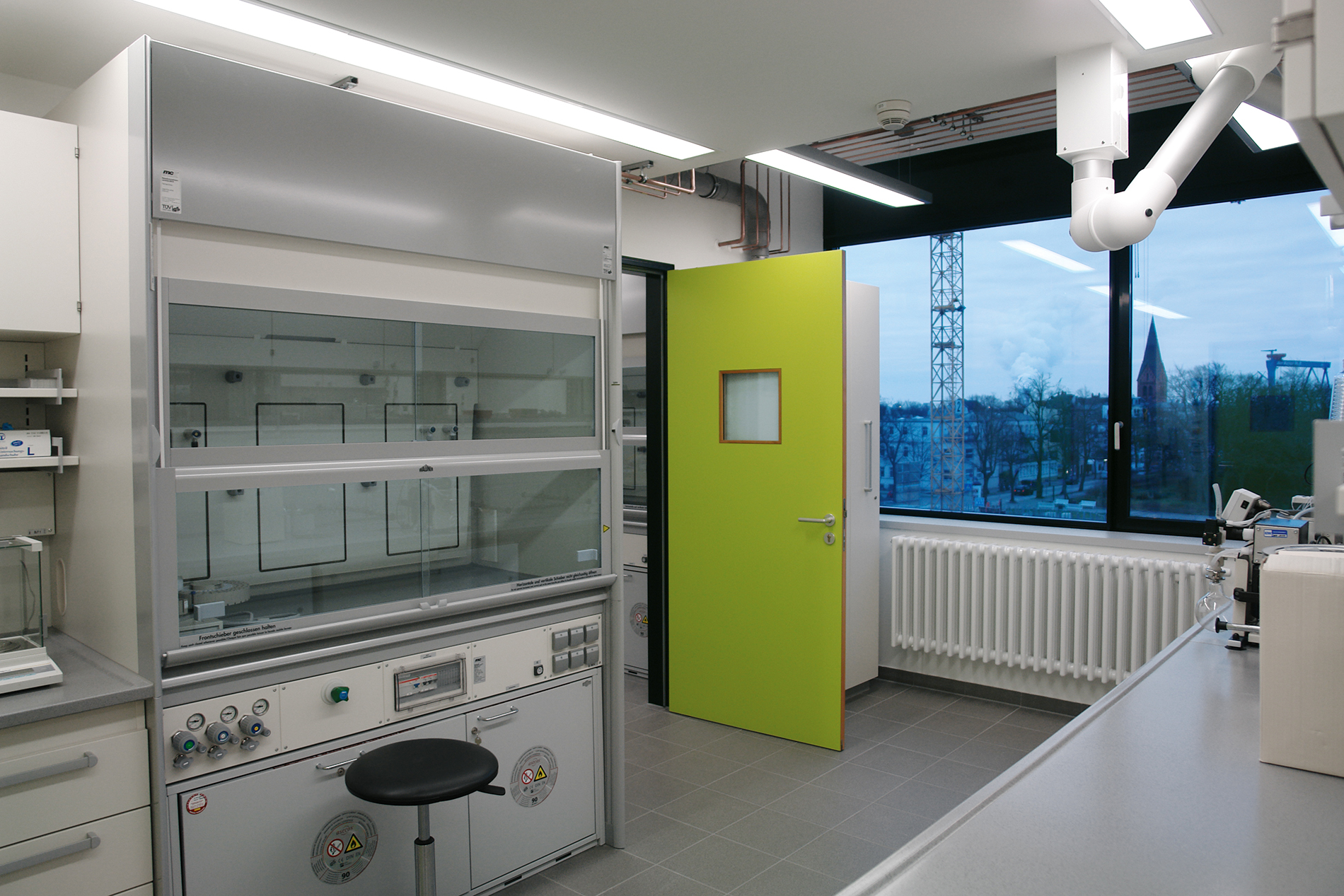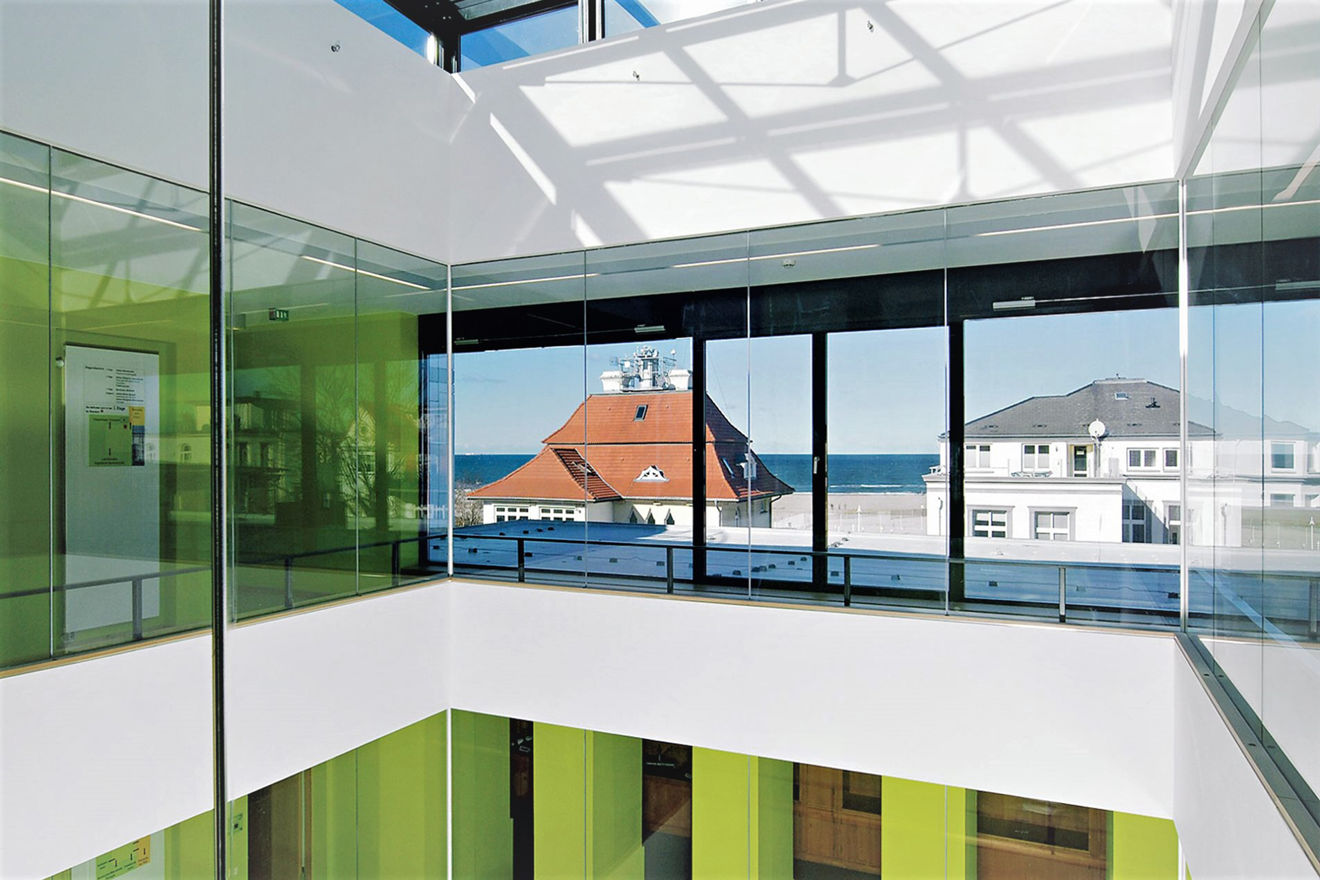 Das Institut für Ostseeforschung befindet sich direkt an der Strandpromenade und nutzt unter anderem die Strandvilla der Familie Henkel aus den 1920-iger Jahren. Der Entwurf ergänzt mit einem Neubau am Kurpark die historisch und architektonisch bedeutsame villenförmige Bebauung der Strandpromenade. Im Neubau sind Labor- und Reinräume, Büroflächen und die Bibliothek des Instituts untergebracht. Großzügige Erschließungs- und Pausenflächen fördern die Kommunikation unter den Wissenschaftlern. Mittelpunkt des Institutes ist die in leuchtenden Grüntönen gestaltete Treppenhalle mit einem Glasdach. Das Gebäude, Teile der Innenausstattung, die Möblierung sowie die Signaletik wurden nach Entwürfen von KSV realisiert. Das neue Institutsgebäude schafft für die Wissenschaftler und Studenten eine moderne und nachhaltige Arbeitsatmosphäre, welche mit Spannung die nächsten Forschungsergebnisse erwarten lässt.