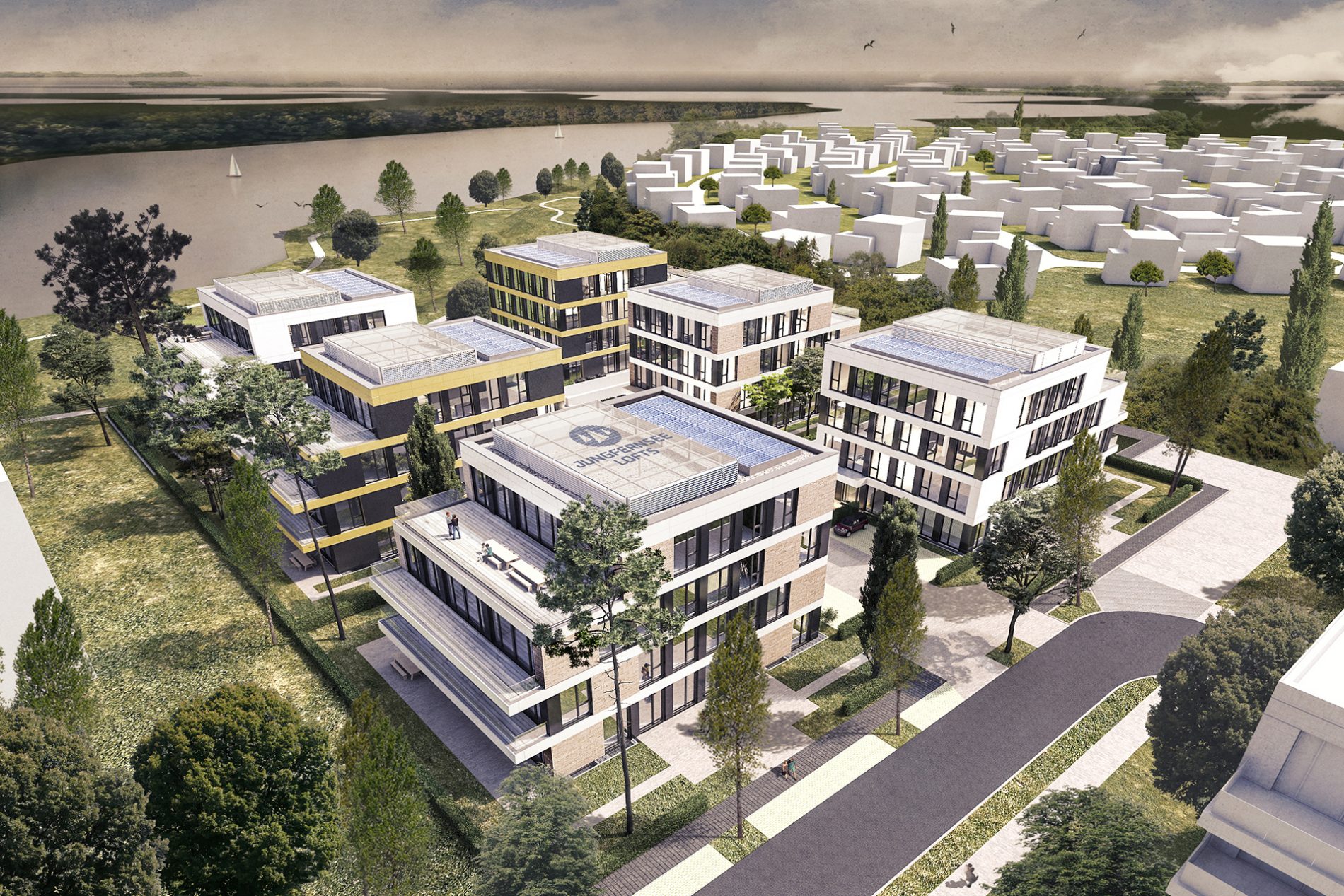 Creative Work. Creative Life. Die Jungfernsee Lofts am Campus Jungfernsee in Potsdam verbinden kreatives Arbeiten mit individueller Lebensqualität. Das Grundstück liegt zwischen der Tram Station Campus Jungfernsee, dem SAP Innovationscenter, dem Yachthafen und dem Bootssteg für das Wassertaxi. Ein urbaner Welcome Platz in der Mitte des Quartiers ermöglicht Austausch und Kommunikation zwischen den Nutzern. In den angrenzenden Erdgeschossflächen sind öffentliche Cafés und Dienstleistungen angedacht.