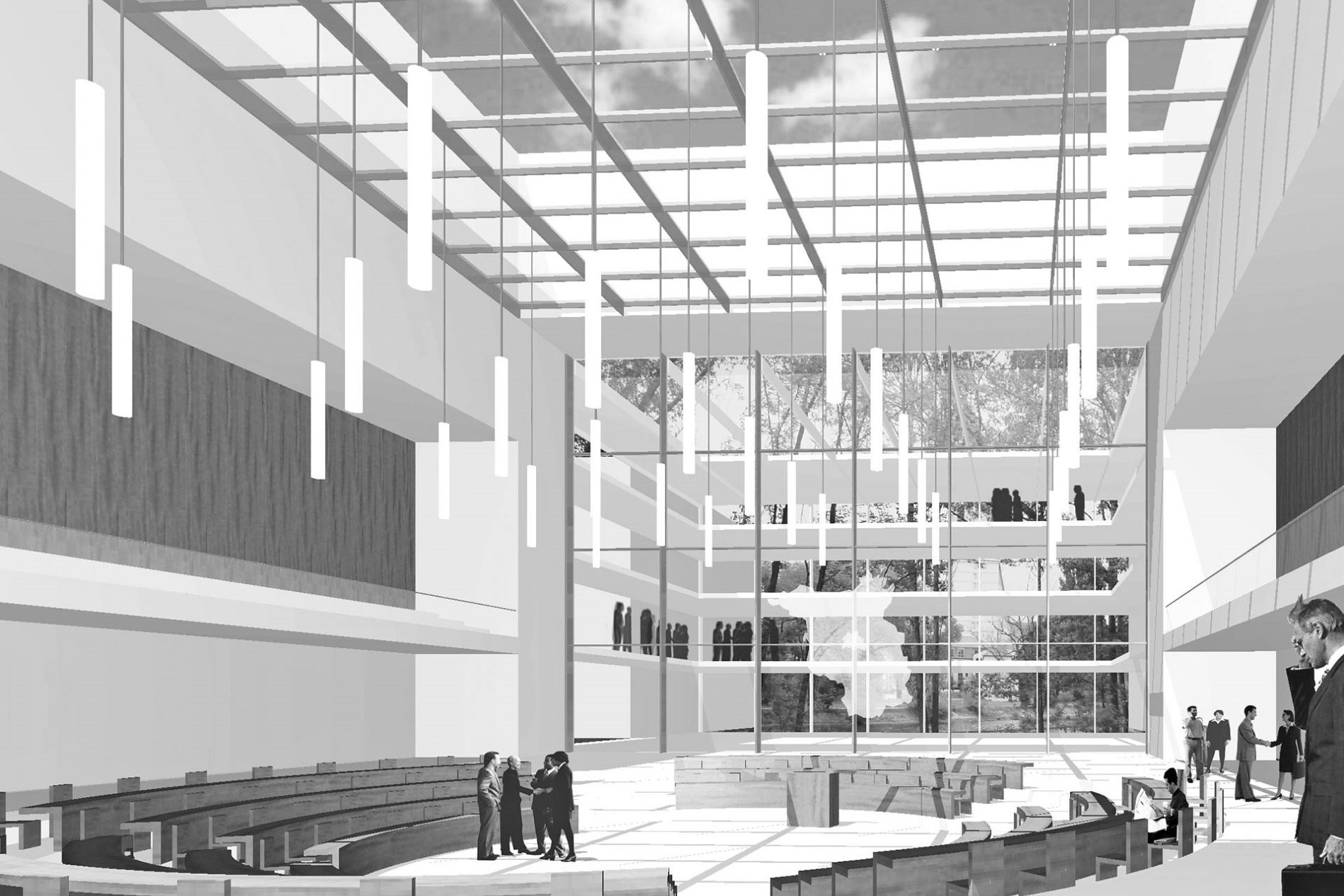Der 1995 ausgelobte Architekturwettbewerb wies als Standort des neuen Landtages von Berlin-Brandenburg ein Grundstück an der Havel in der Potsdamer Speicherstadt mit Blick auf die am anderen Flussufer liegende Altstadt von Potsdam aus. Der mit dem ersten Preis ausgezeichnete Entwurf stellt den Parlamentssaal ins Zentrum des Ensembles. Fraktionssäle, Abgeordnetenbüros und Landtagsverwaltung sind in sechs Bürogebäuden untergebracht, welche den Blick in die Landschaft der Havelaue ermöglichen und zugleich den Plenarsaal freistellen.