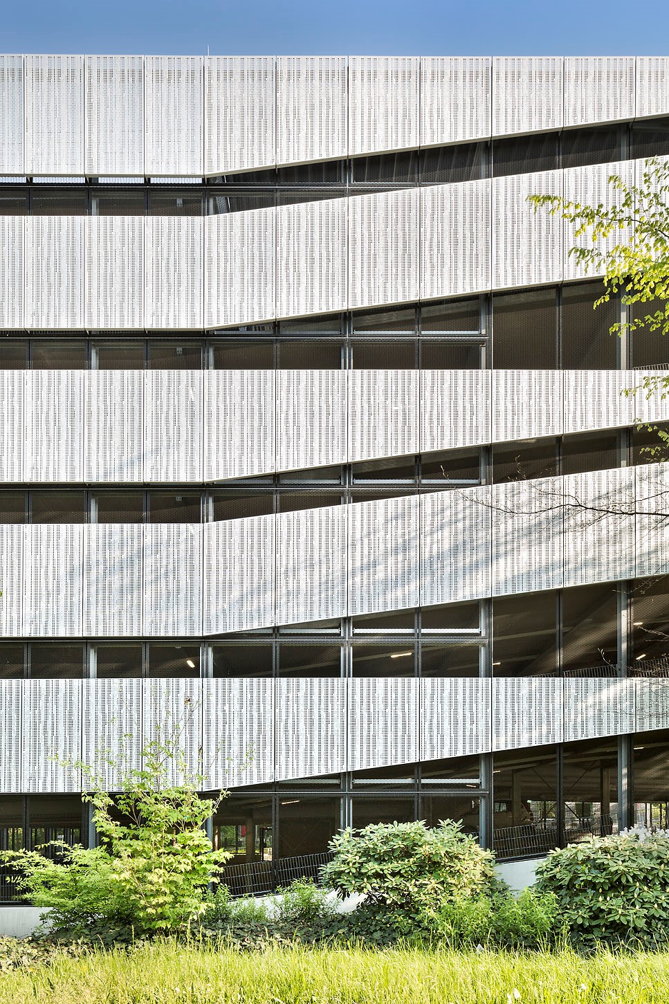 Das Konzept verleiht dem Parkhaus eine moderne, unverwechselbare eigene Identität, welche die eintönigen und langweiligen Strukturen von klassischen Parkhäusern vermeidet. Die Aluminiumspirale verwandelt das Parkhaus in ein spannendes Designobjekt, dieses Parkhaus ist Kunst.