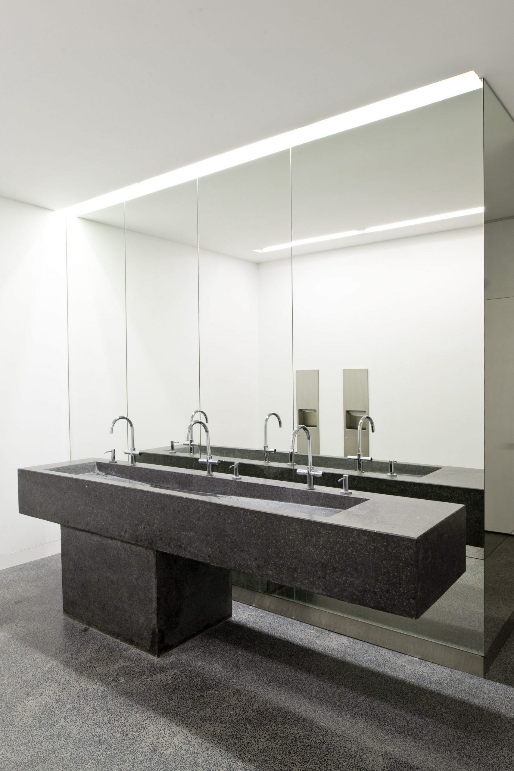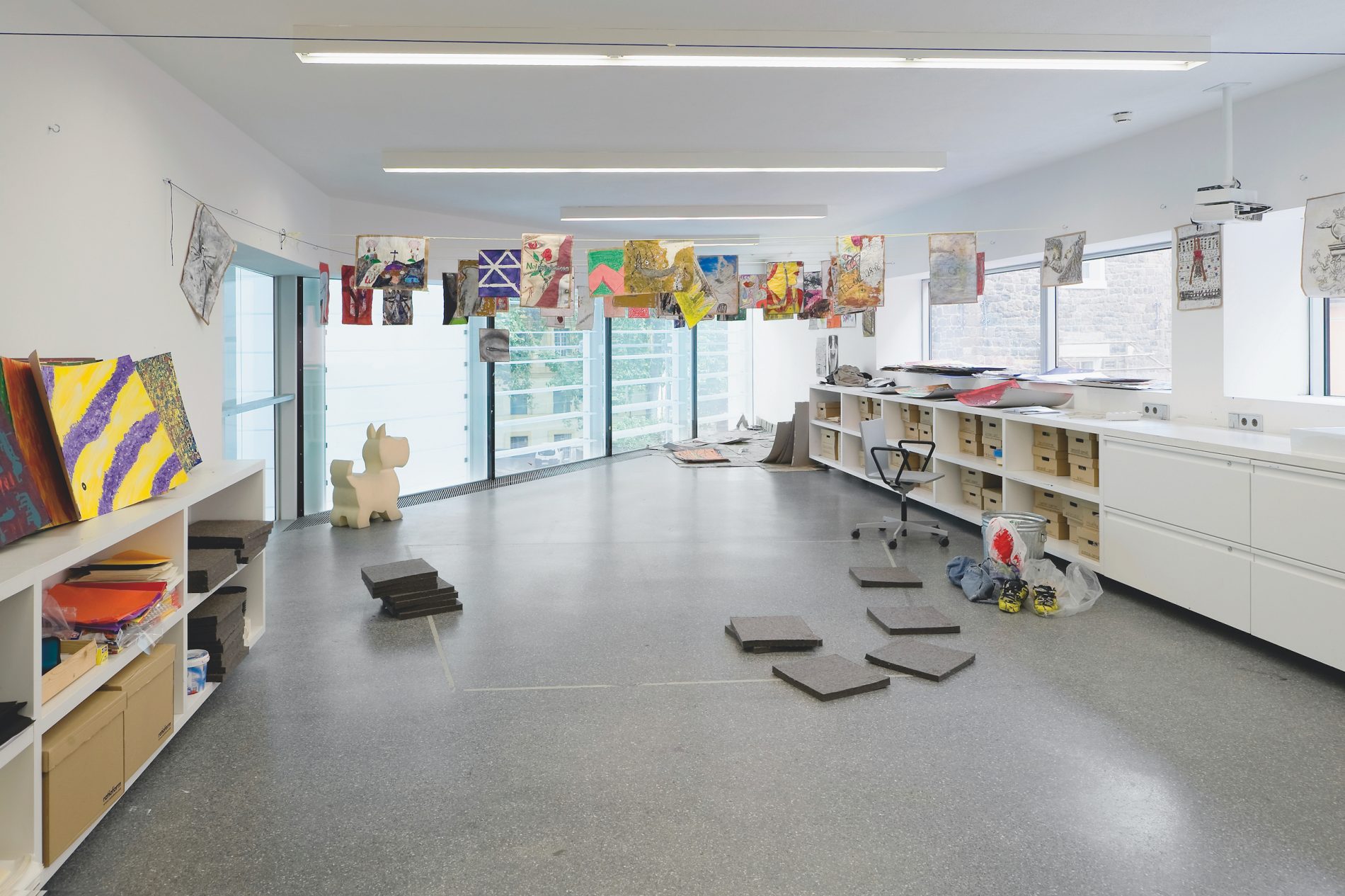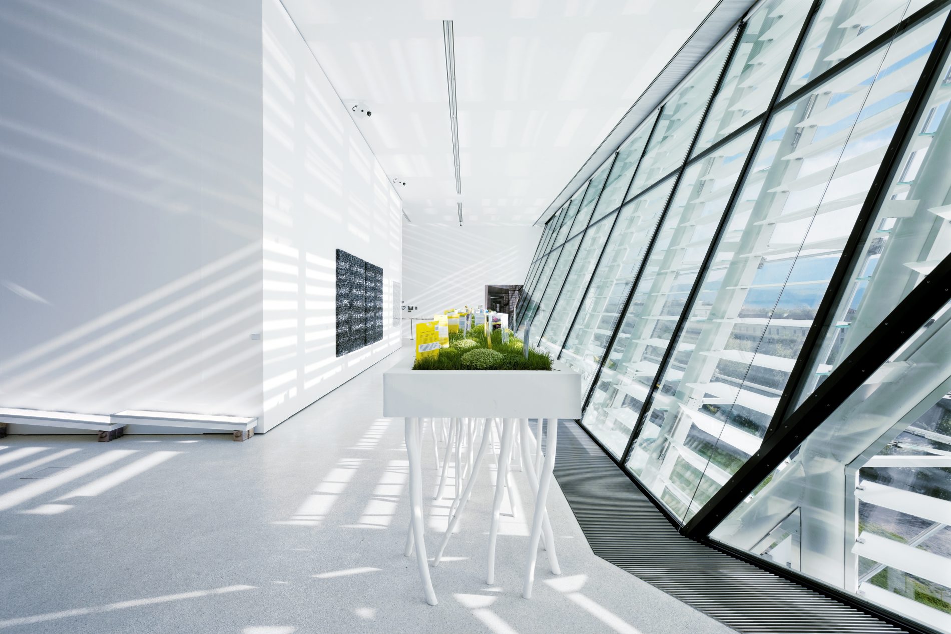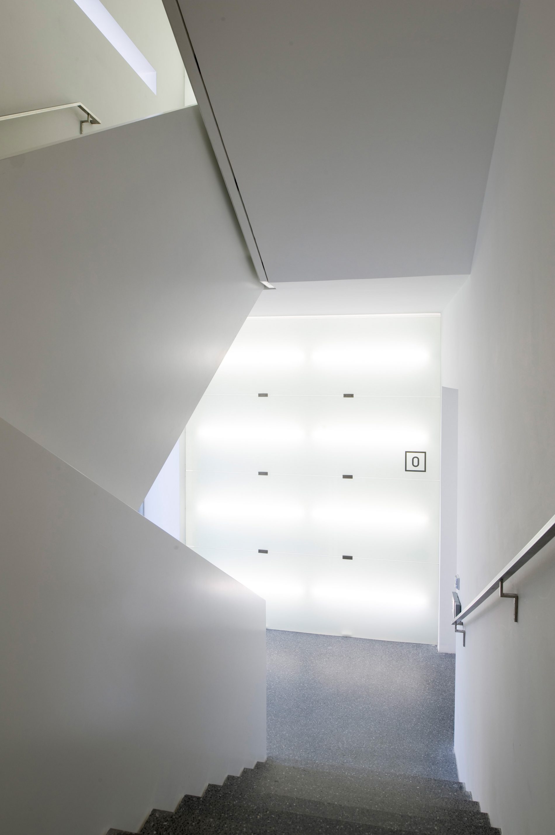 Über die Gestaltung und Modellierung des Lichts gewinnen die Innenräume ihren Charakter und ihre Eigenheiten. Deshalb ist das Innere des Gebäudes mit seinen Wänden und Einbauten sowie Möbeln weiß. Weiß, weil es dem Licht am nächsten kommt, den Raum weitet, Objekte und Menschen zu Akteuren macht. Nur die unmittelbar zu berührenden Dinge wie Geländer, Türgriffe, Möbel behalten ihre konkrete Materialität. Die Möbel sind Teil der Architektur, klar, einfach, neutral und flexibel in jedem Bereich einsetzbar. Die markante Struktur der Lichtfelder an der Decke folgt der dreischiffigen Struktur des Hauses und lässt das Museum aus sich heraus leuchten. Der Terrazzoboden verändert seine Farbe beginnend von schwarz im Veranstaltungsbereich im Untergeschoss über grau zu weiß in der oberen Tageslichtebene.