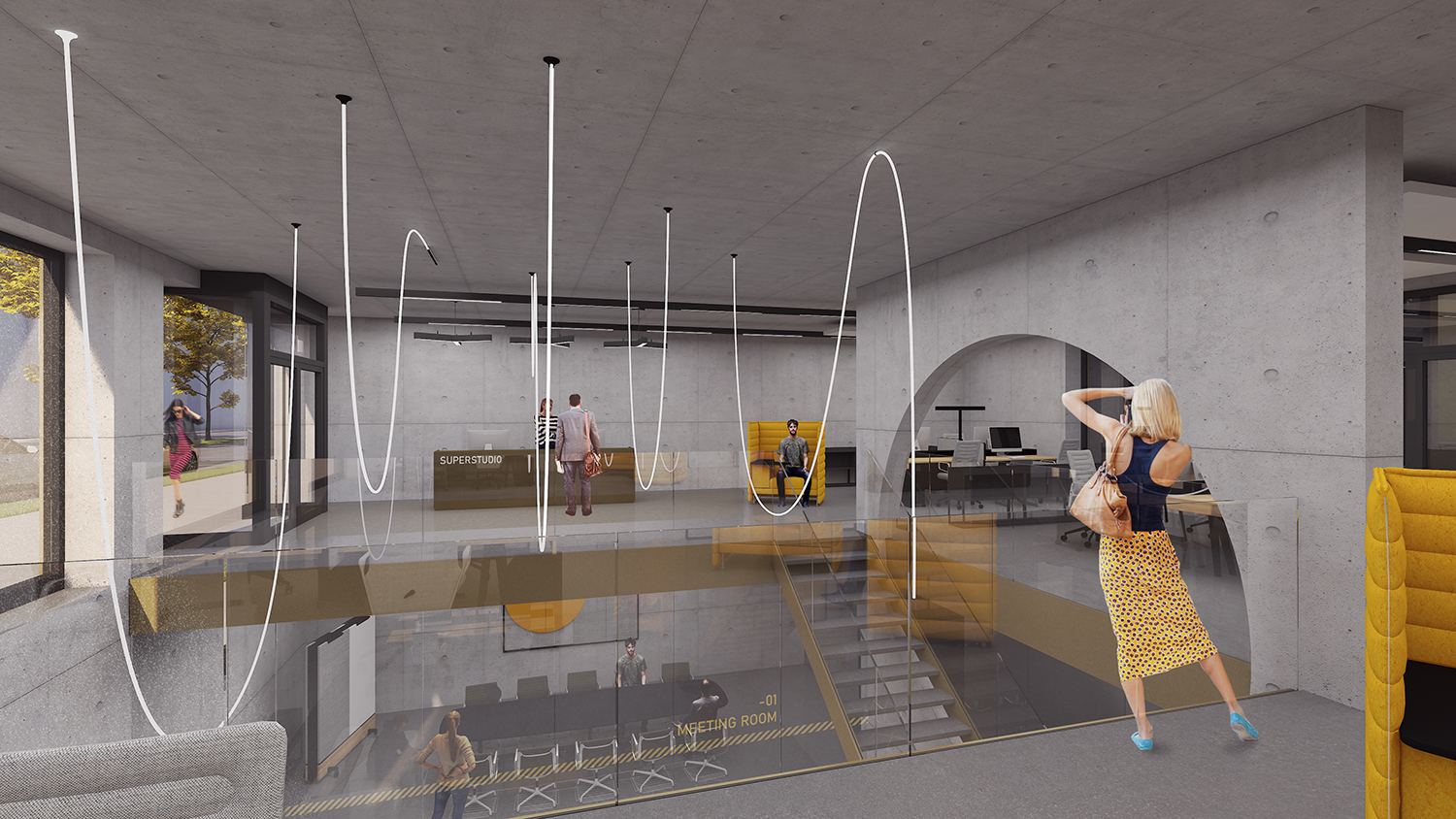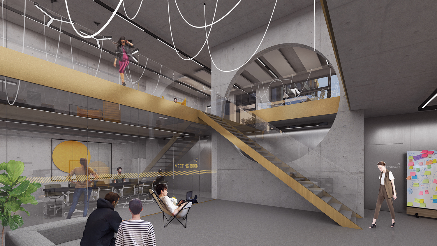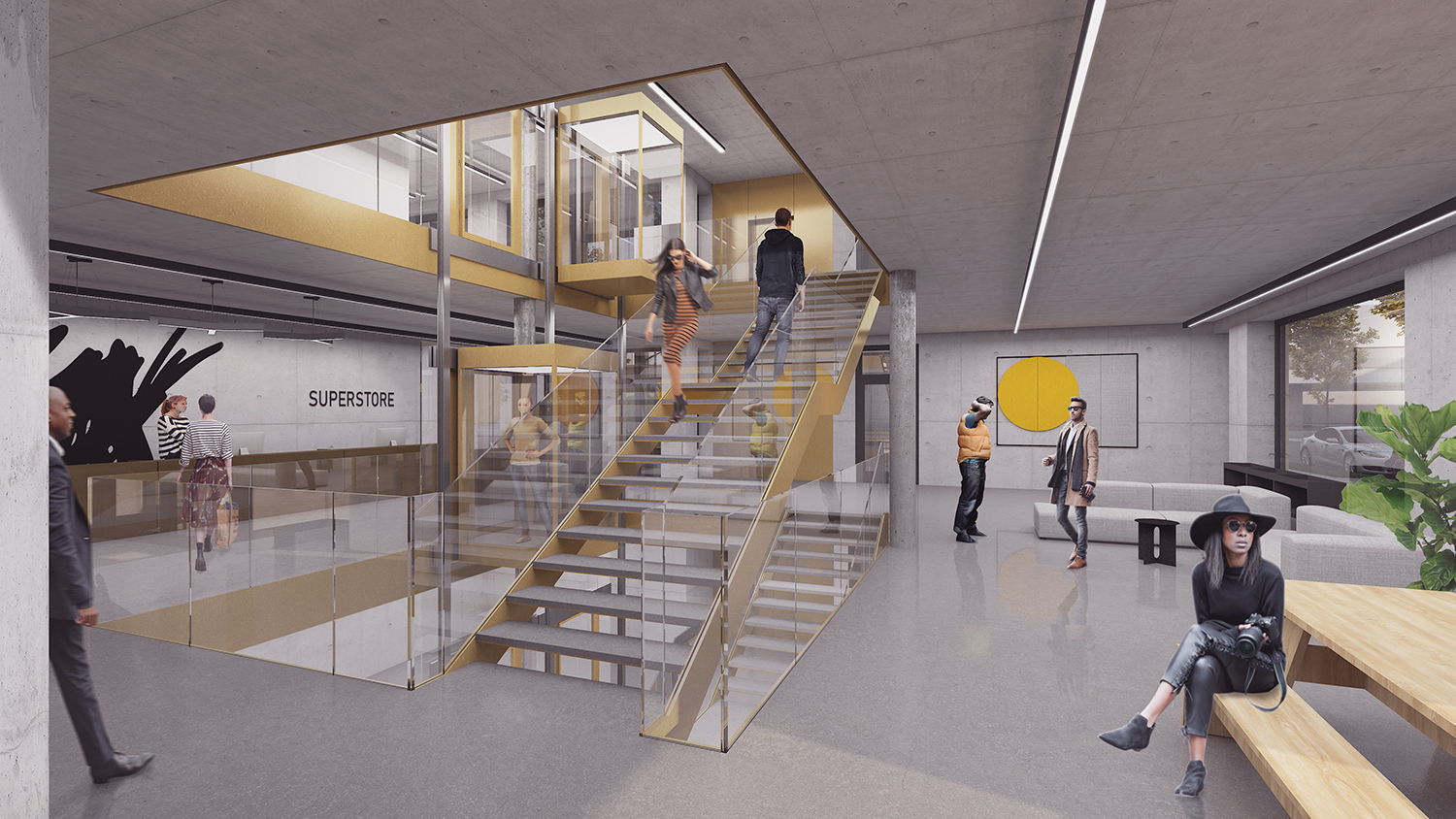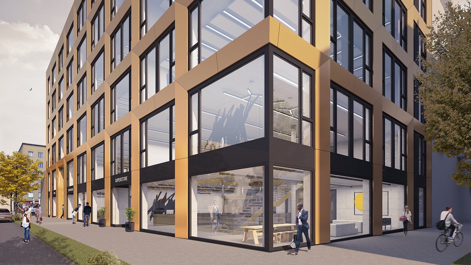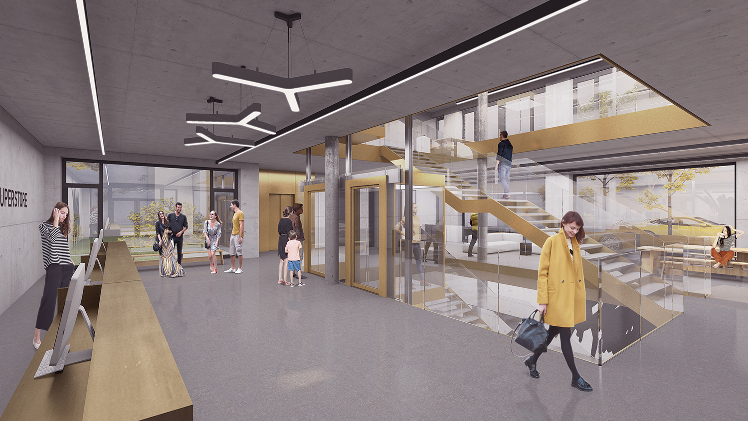Der Neubau arrondiert den Bestand zu einem urbanen und lebenswerten Mix-Use-Quartier. Die durch großzügige, tagesbelichtete Treppen und Glasaufzüge erschlossenen Gewerbeflächen werden für Single-Tenant oder Multi-Tenant Nutzer flexibel ausgebaut. Die Nutzungseinheiten ab dem 2.OG verfügen über Terrassen mit hoher Aufenthaltsqualität. In der Wexstraße beleben zweigeschossige Studios mit großen Schaufenstern für Galerien, Agenturen, Gastronomie und Showrooms das Quartier. Die Studios sind zugleich an die Terrassen in den Gartenhöfen angebunden.
