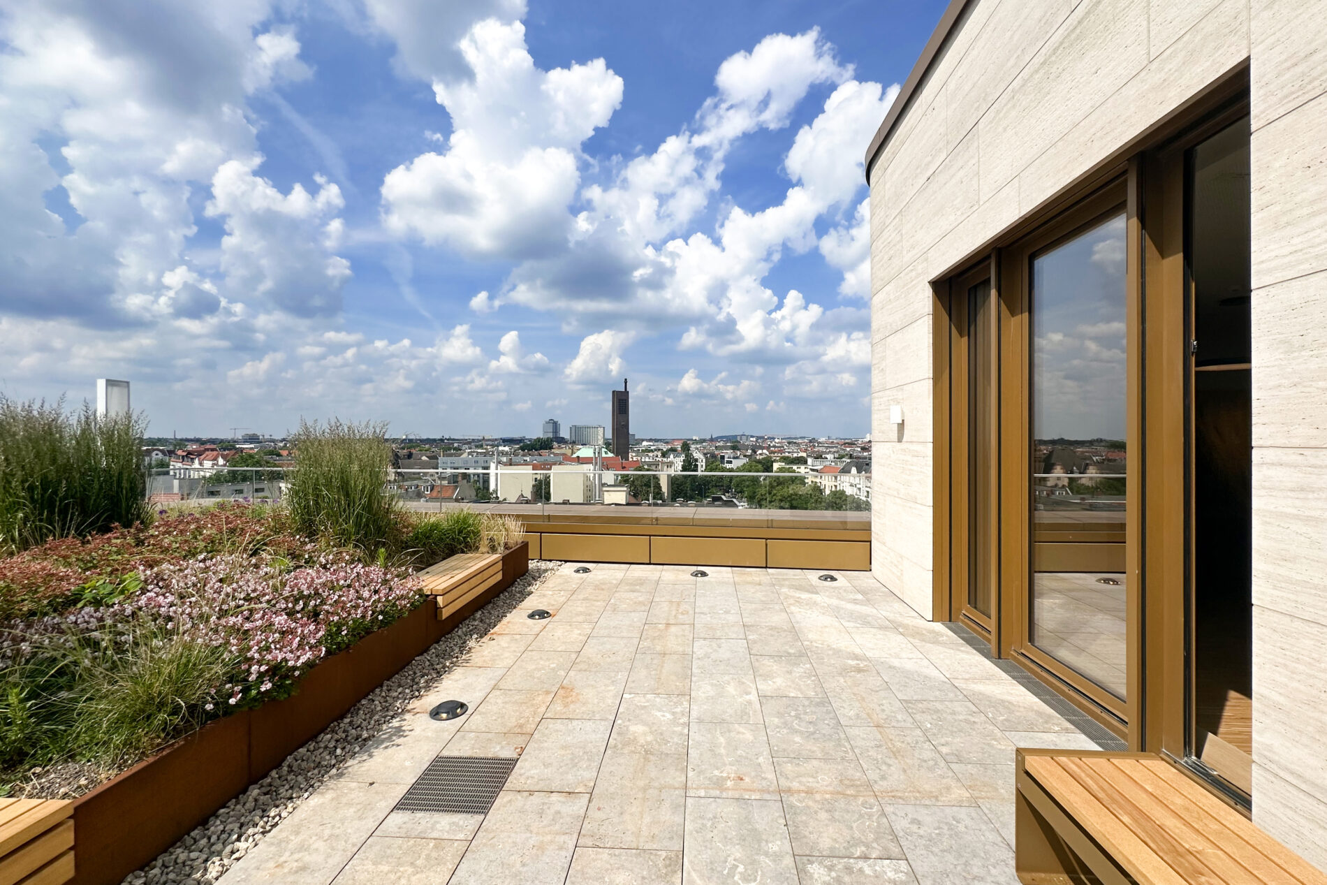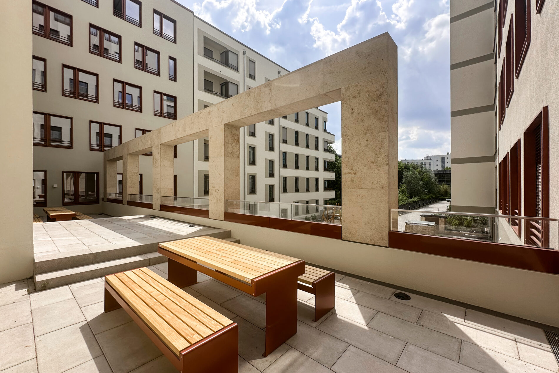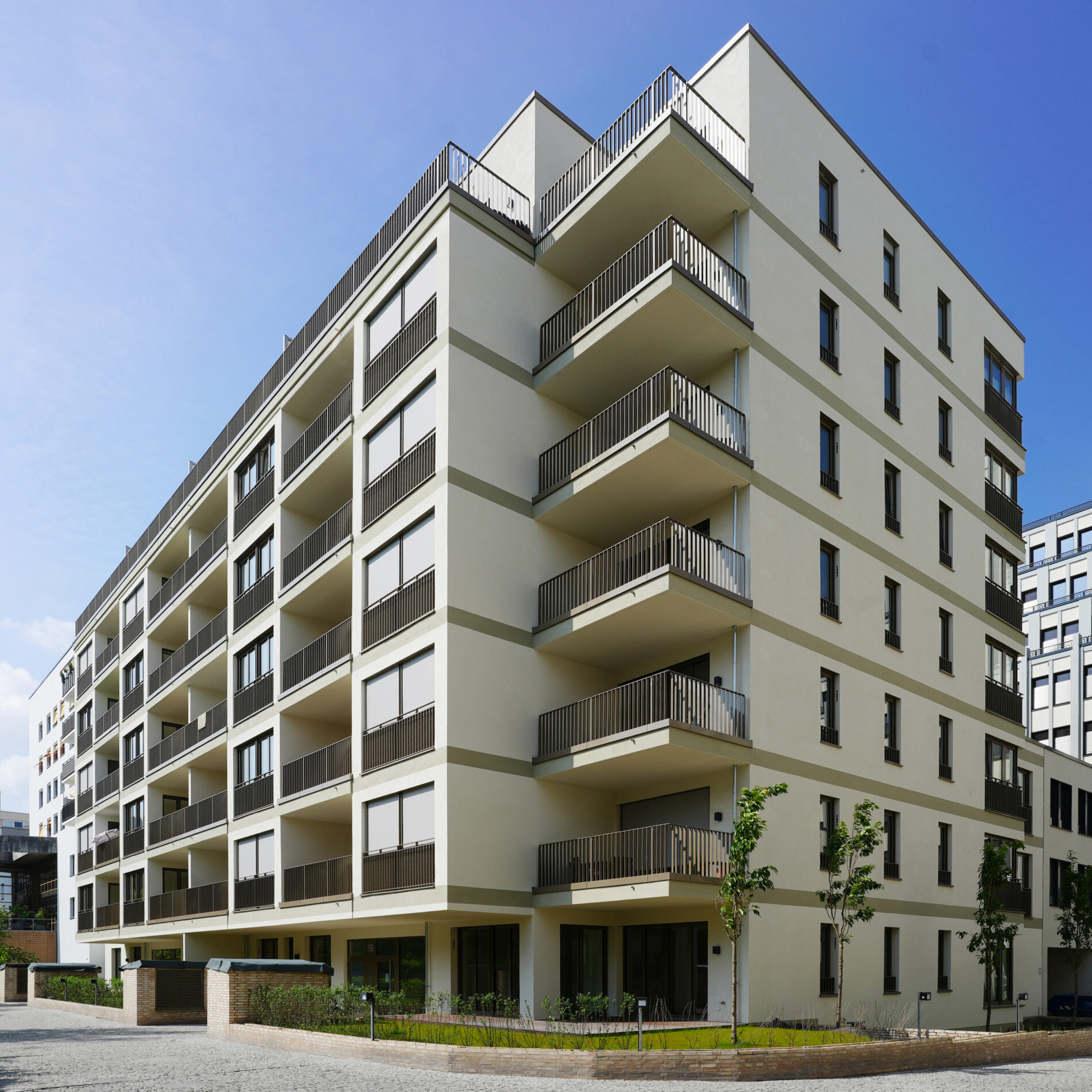 Auf Basis des von KSV entwickelten städtebaulichen Masterplans, für das 7.500 m² große Grundstück, wurde ein B-Plan erarbeitet, welcher die baurechtliche Grundlage für die Bebauung des Grundstücks mit sieben eigenständigen Häusern auf gemeinsamer Tiefgarage schuf. Für die drei Bürohäuser und die vier Wohnhäuser entwickelte KSV individuelle Grundriss und Fassadenkonzepte, welche dem Quartier eine unverwechselbare und urbane Struktur verleihen. Die sieben Häuser sind durch mehrere grüne Höfe miteinander verbunden und integrieren Teile der ursprünglichen Bebauung.