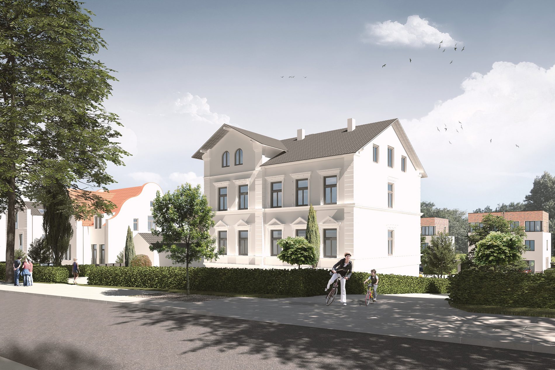 Das Projekt »Salinengärten« hat das Ziel, die Grundstücke Salinenstraße 11– 21, unter Einbeziehung der historischen Villen zu einem hochwertigen und naturnahen neuen Wohnquartier zu entwickeln. Drei historische Villen bilden die Brücke zur Geschichte des Ortes. Die Villen Salinenstraße 13 und 15 wurden umfassend saniert und bilden das Entree zu den Salinengärten. Beide Villen repräsentieren im Original die historische Bebauung. Die Villa Salinenstraße 19 ist eine Adaption des 1908 errichteten und nach schweren Beschädigungen abgerissenen Vorgängerbaus. Die neuen Villen Salinenstraße 11 und 21 runden das Ensemble der Villen an der Salinenstraße mit einem moderat modernen Architekturkonzept ab. Das Fenster mit dem Rundbogen an der Straßenfassade zitiert die Öffnungen zum Einbringen von Waren in die Kontor- und Lagerhäuser in den Hansestädten.
