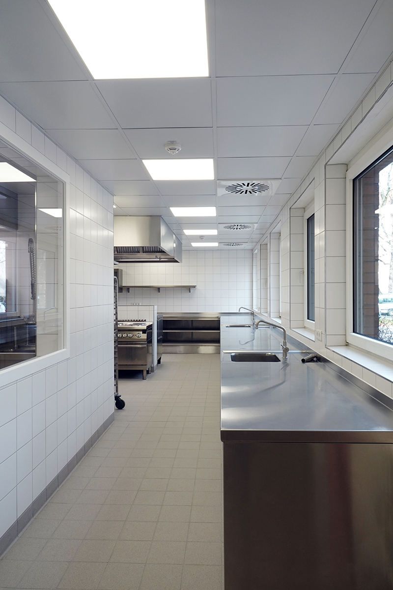 Im Bereich des Schwimmbads und der Umkleideräume sollten ca. 60 zusätzliche Plätze geschaffen werden. In den vormaligen Technikflächen wurde ein Lager- und Kühlbereich für eine moderne Küche untergebracht. Von hier aus werden heute vier weitere Standorte versorgt. Im Zuge der Umbaumaßnahmen wurden enge Flursituationen beseitigt, kleine Räume zu großen zusammengelegt.