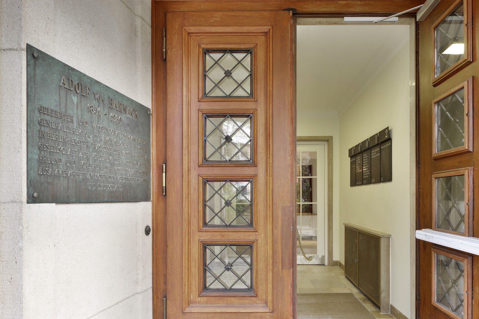 Das 1929 vom Architekten Carl Sattler fertiggestellte Harnack-Haus in Berlin war Clubhaus und Treffpunkt für die Wissenschaftler der umliegenden Institute der Kaiser-Wilhelm-Gesellschaft. 1945–1994 wurde das Gebäude als Offiziersclub der amerikanischen Streitkräfte in Berlin genutzt. Die Max-Planck-Gesellschaft, als Nachfolgerin der Kaiser-Wilhelm- Gesellschaft, übernahm das Haus im Anschluss und nutzt es heute als internationales Tagungszentrum. Ziel der umfassenden baulichen Sanierung 2011–2014 war es, das Gebäude an Anforderungen einer modernen Tagungsstätte anzupassen. Die Geschichte und die Wissenschaftler der Kaiser-Wilhelm-Gesellschaft/Max-Planck-Gesellschaft mit ihren 18 Nobelpreisträgern stehen im Mittelpunkt der medialen Inszenierung.
