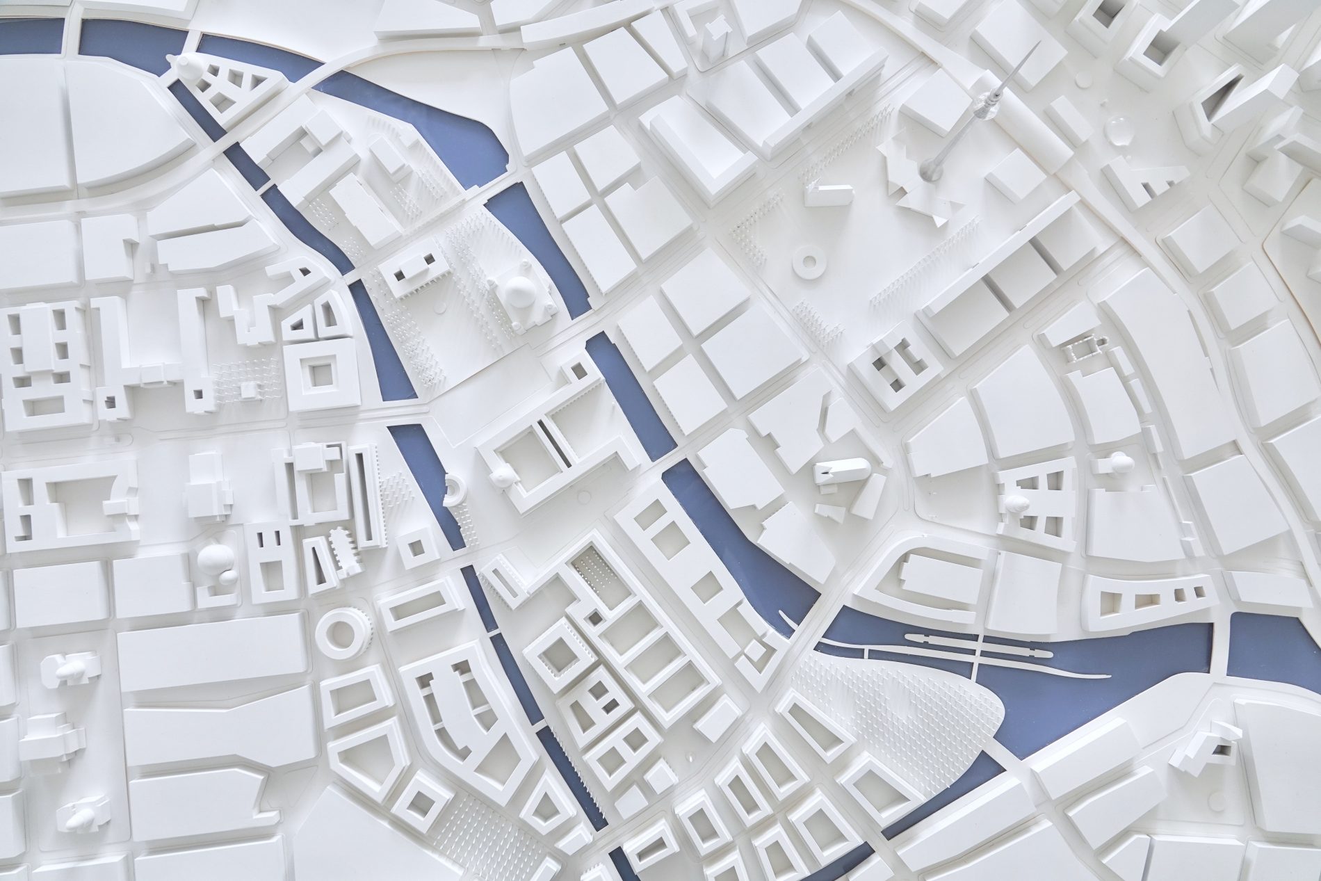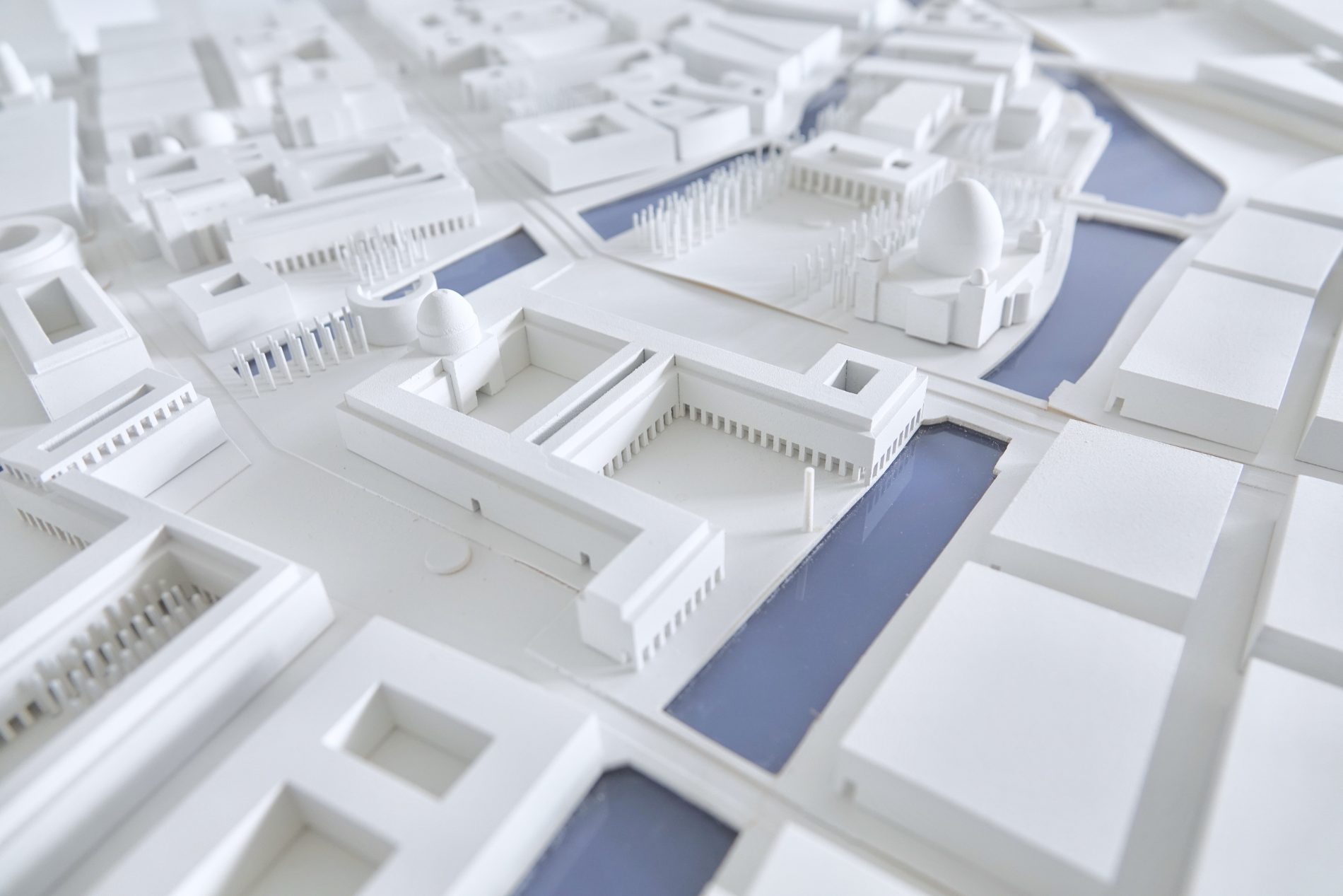 Der mit dem zweiten Preis ausgezeichnete Entwurf definiert das System von öffentlichen Plätzen und Freiflächen, welche zum Teil historisch abgeleitet sind, aber auch originär neue Stadträume umfassen. Die zur Spree orientierten Plätze sind baulicher Kristallisationspunkt und stellen den Bezug zwischen Stadt, Insel und Fluss wieder her. Das neue Schloss fasst Schlossplatz und Lustgarten und öffnet über den Platz zur Spree eine Blickachse über die Bebauung am Marx-Engels-Forum zur Hochhaus-Skyline am Alexanderplatz mit dem Fernsehturm.