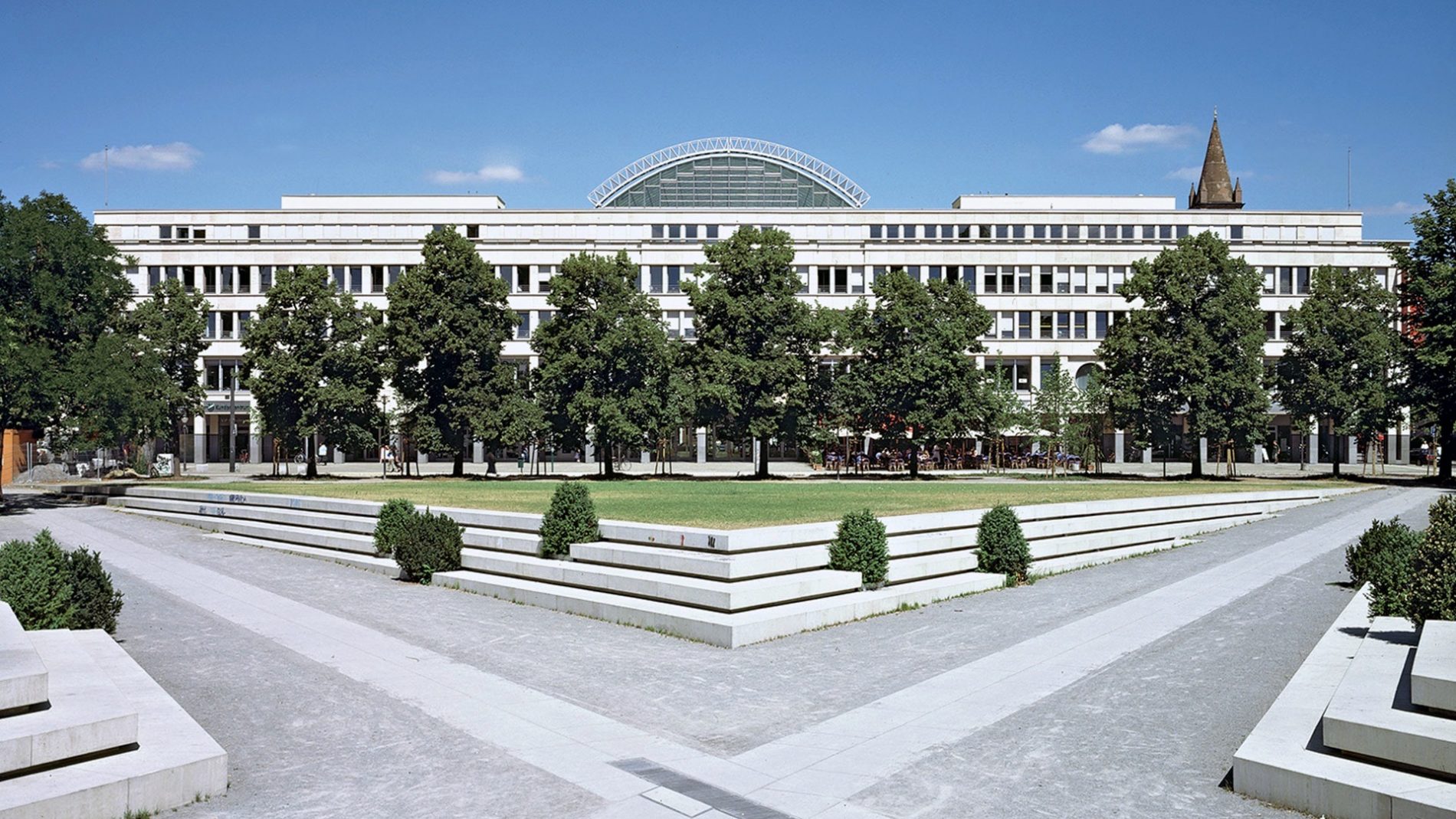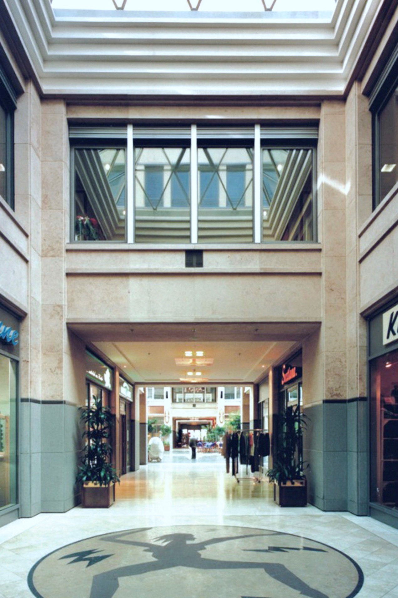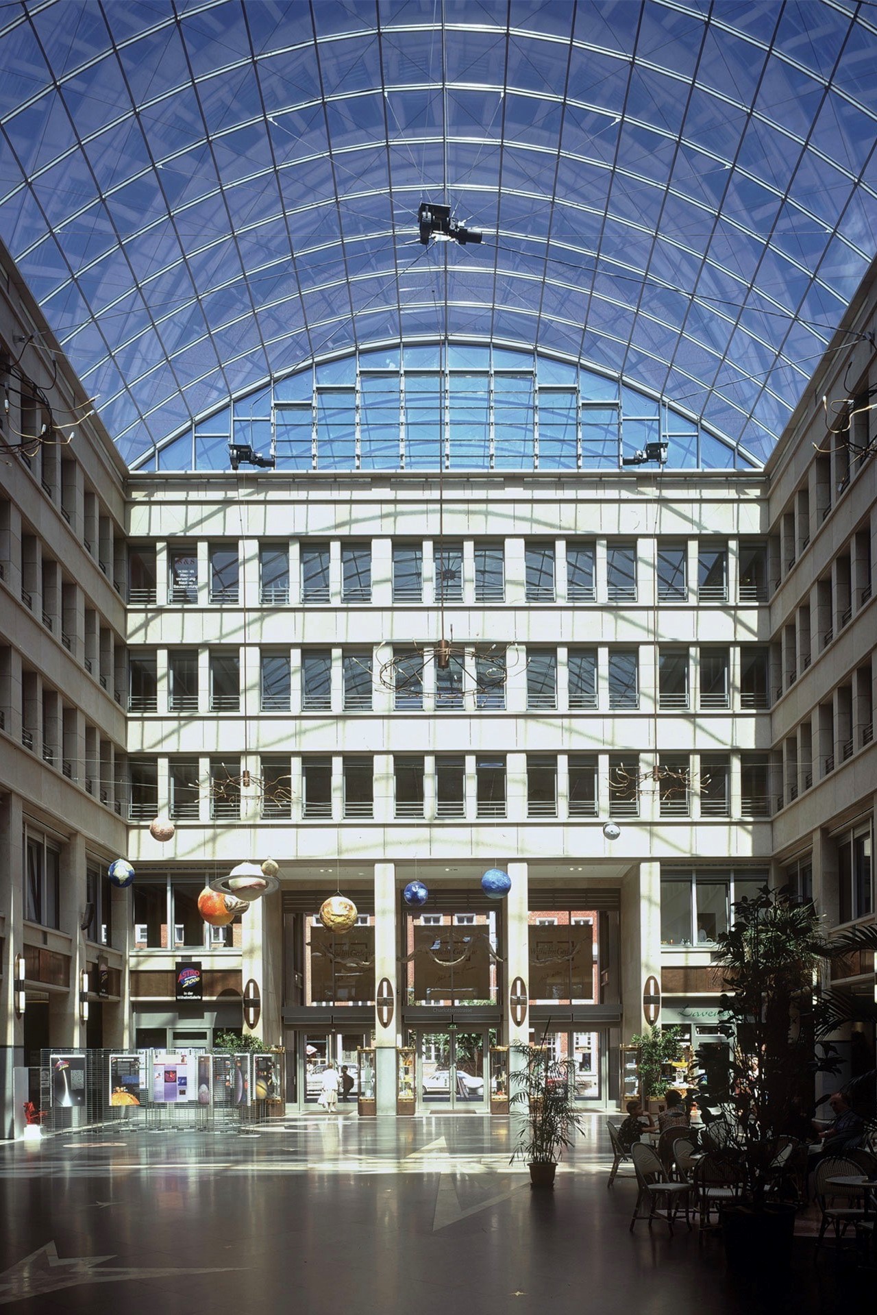 Der Entwurf zur Neubebauung des städtebaulich und geschichtlich bedeutenden Areals verarbeitet die Dimensionen und Fassadengliederung der von Carl von Gontard errichteten Schaufassade. Die Markthalle von Andrea Palladio in Vicenza, mit der Idee des überdachten Stadtplatzes, ist die zweite Inspirationsquelle des neuen Entwurfes. Die große, glasüberwölbte Piazza ist der Mittelpunkt des Quartiers. Hier treffen sich die 4 Passagen, welche die Piazza mit dem Stadtraum verbinden. Der von Torsten Krüger entworfene Natursteinboden der Piazza und der Passagen symbolisieren das Universum mit Sternen und Spiralnebeln. Zwei Medaillons in den Passagen zeigen Mann und Frau, die als Sinnbild des Lebens um das Universum kreisen. Das Nutzungskonzept umfasst Retail-, Gastronomie- und Büroflächen sowie eine zweigeschossige Tiefgarage in einem historischen Kontext.