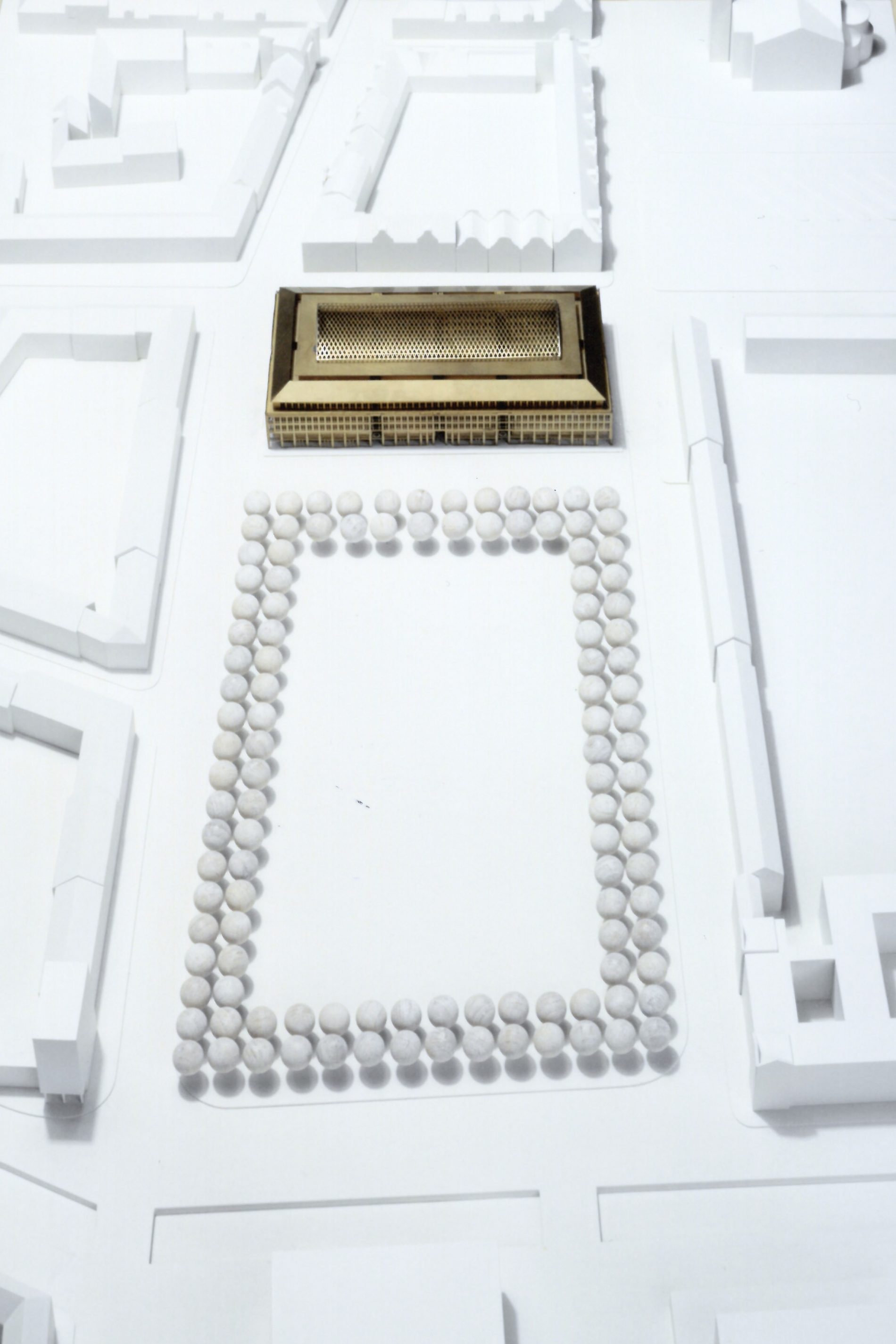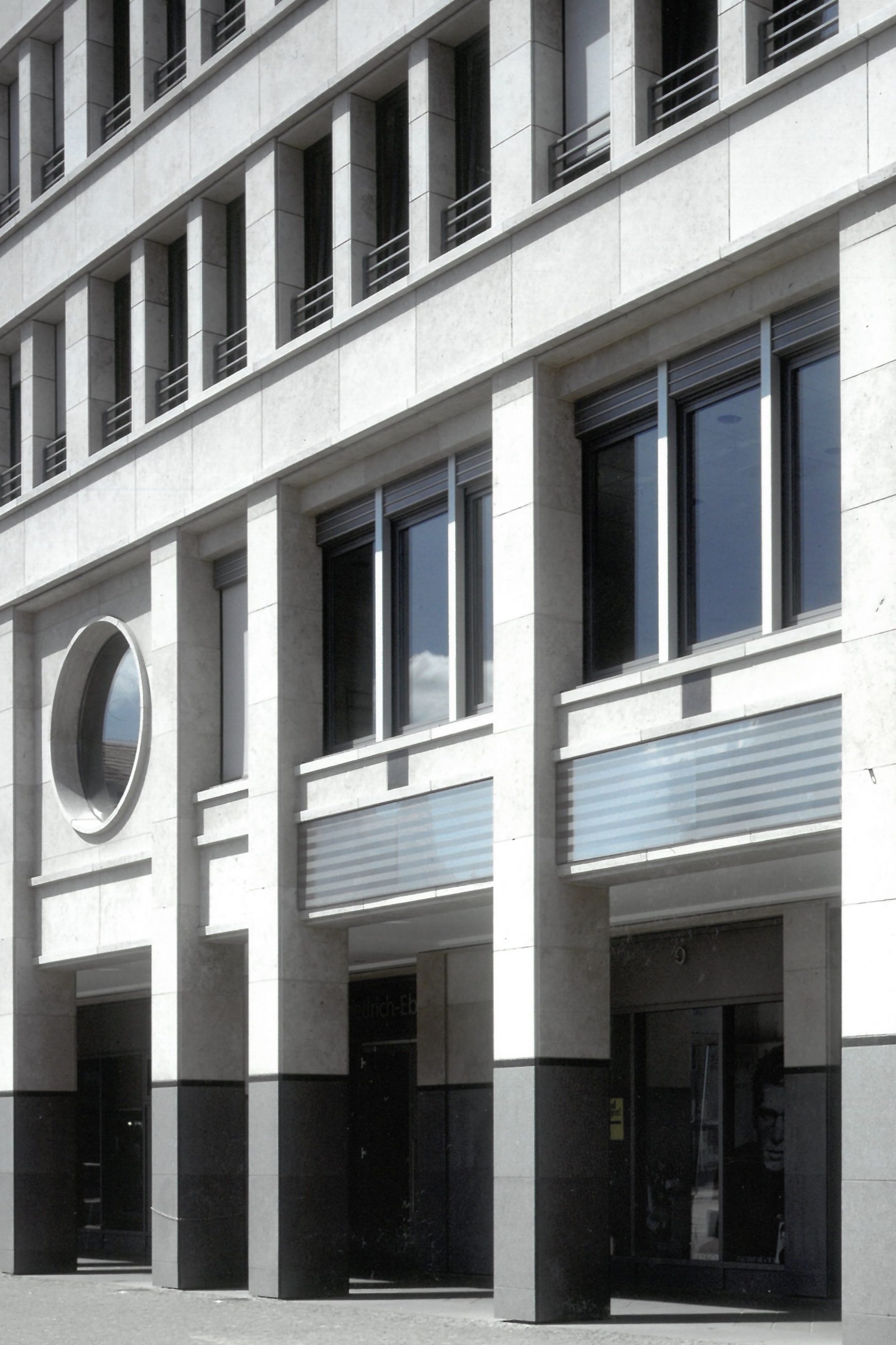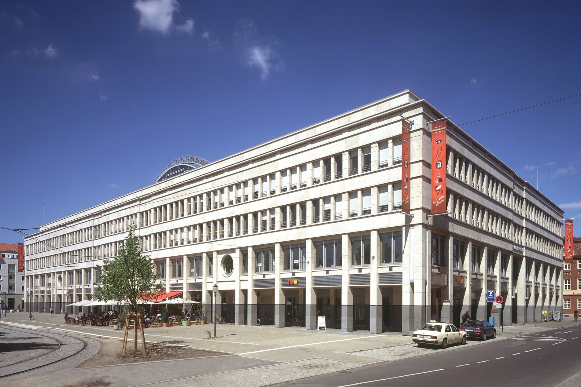 Der Entwurf zur Neubebauung des städtebaulich und geschichtlich bedeutenden Areals verarbeitet die Dimensionen und Fassadengliederung der von Carl von Gontard errichteten Schaufassade. Die Markthalle von Andrea Palladio in Vicenza, mit der Idee des überdachten Stadtplatzes, ist die zweite Inspirationsquelle des neuen Entwurfes. Die große, glasüberwölbte Piazza ist der Mittelpunkt des Quartiers. Hier treffen sich die 4 Passagen, welche die Piazza mit dem Stadtraum verbinden. Der von Torsten Krüger entworfene Natursteinboden der Piazza und der Passagen symbolisieren das Universum mit Sternen und Spiralnebeln. Zwei Medaillons in den Passagen zeigen Mann und Frau, die als Sinnbild des Lebens um das Universum kreisen. Das Nutzungskonzept umfasst Retail-, Gastronomie- und Büroflächen sowie eine zweigeschossige Tiefgarage in einem historischen Kontext.