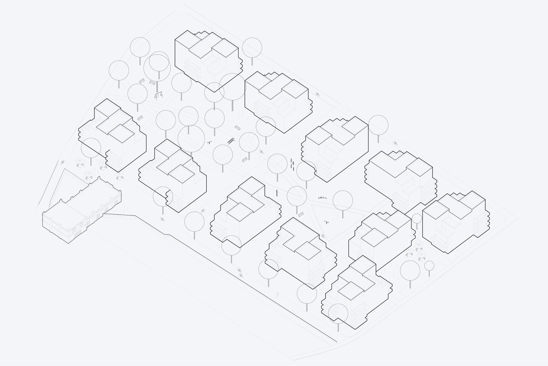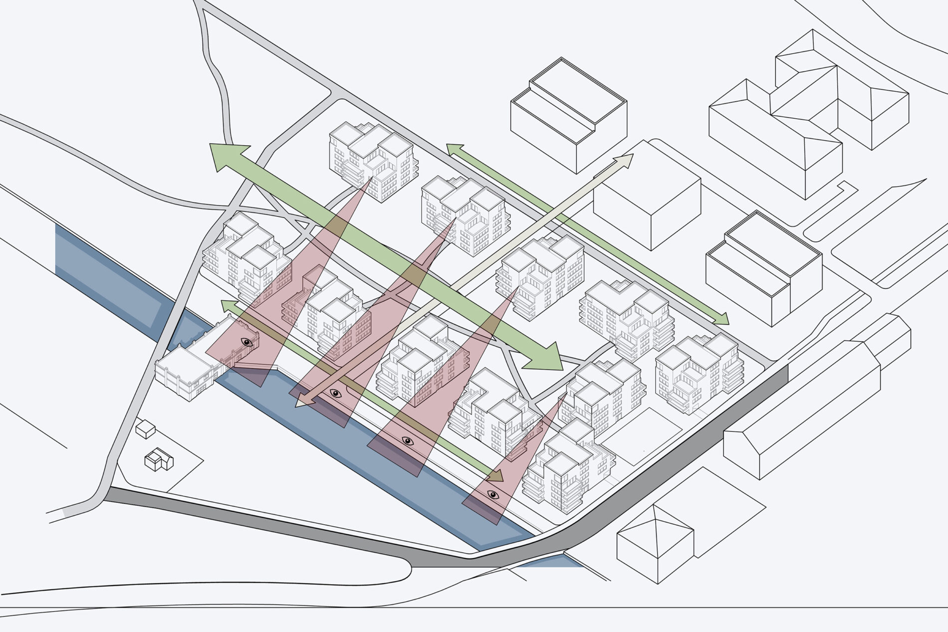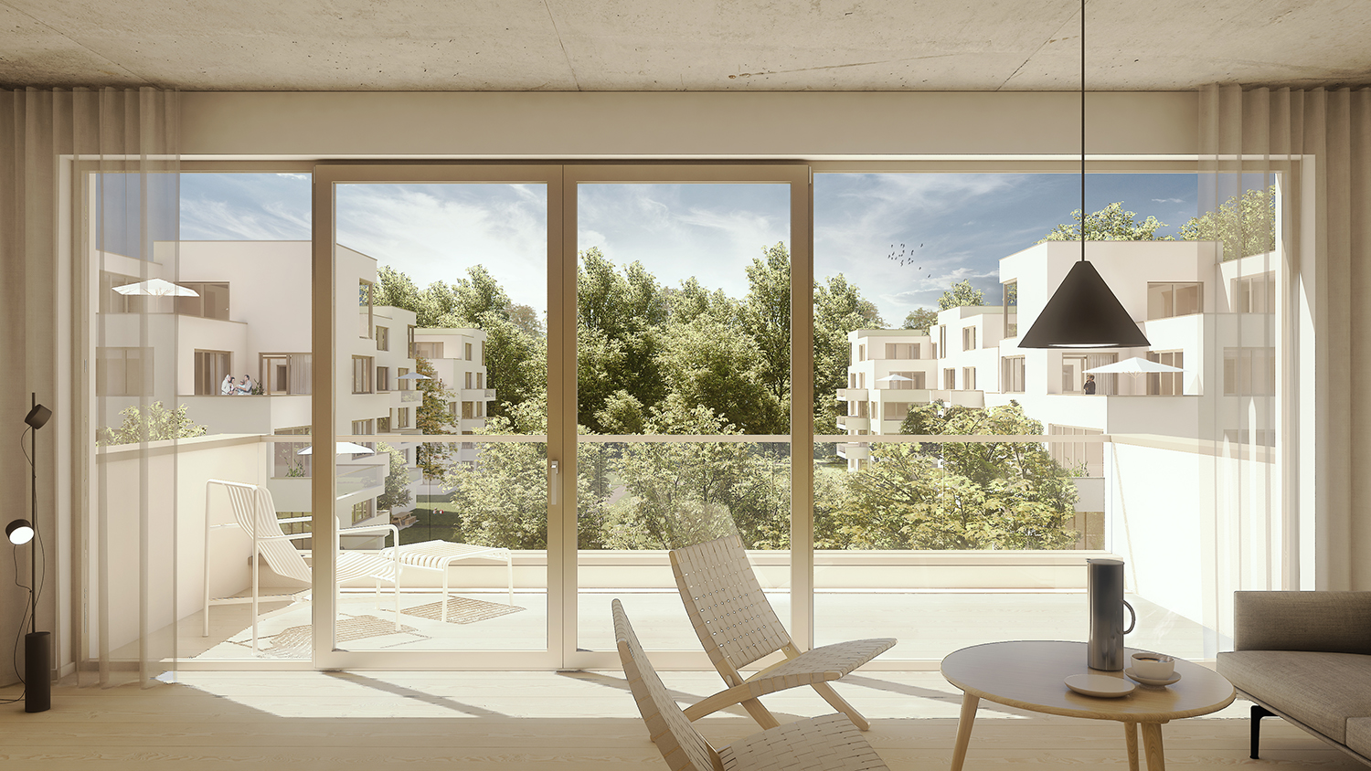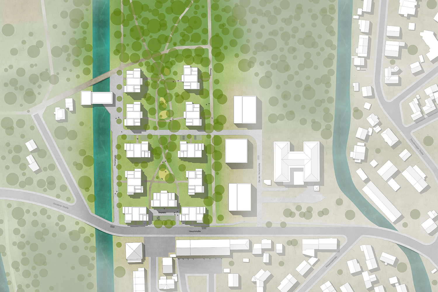 Der Entwurf von KSV überzeugt in der städtebaulichen „Ideenwerkstatt zur Quartiersentwicklung der ehemaligen Spinnerei“. KSV entwickelte ein attraktives und nachhaltiges Bebauungskonzept mit einer offenen villenförmigen Bebauung aus fünfgeschossigen Häusern. Die Gebäudevolumen staffeln sich über Terrassen im 4. und 5. OG zurück, so dass die Häuser geschickt zoniert werden. Ein großer Park in der Mitte des Areals verbindet das Quartier zu den benachbarten Stadtteilen und der Landschaft.